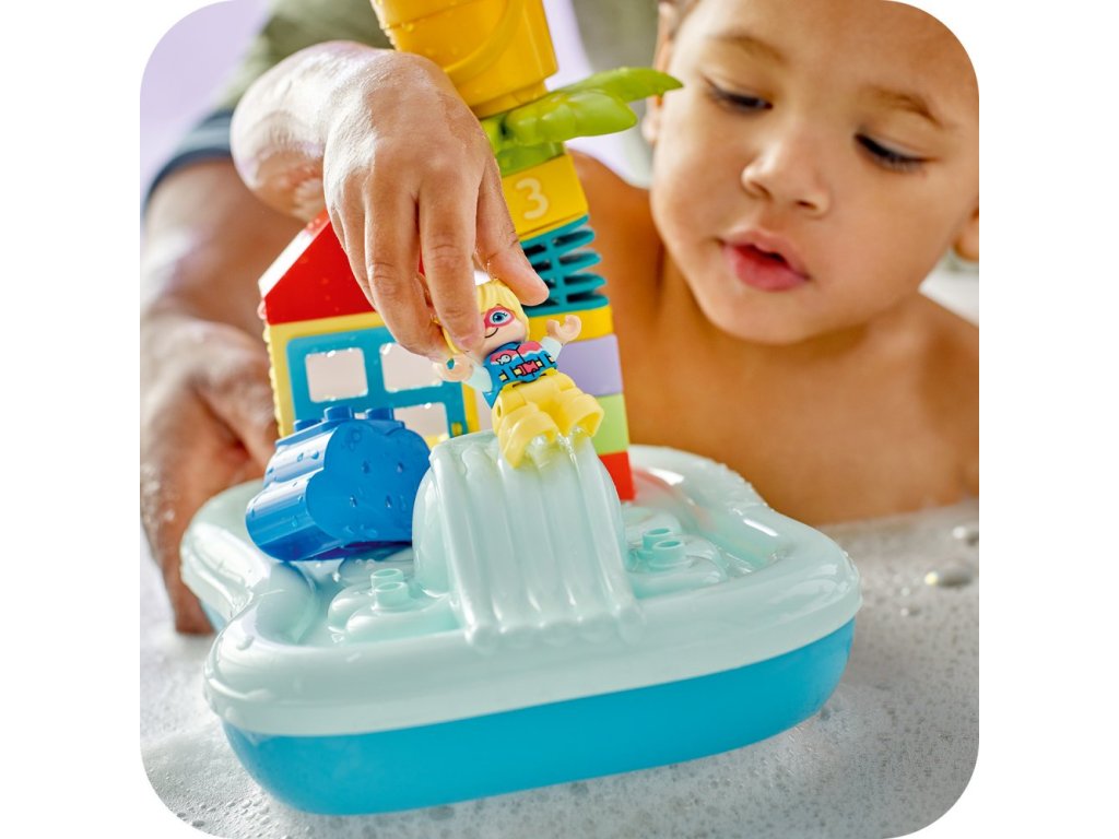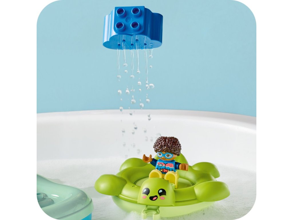 Hračky do koupele LEGO DUPLO jsou navrženy tak, aby se mohli rodiče spolu s dětmi vydat na cestu radostným objevováním. A po koupání mohou dospělí tento plovoucí kruh otevřít a snadno osušit, aby hračka zůstala hygienicky čistá.
