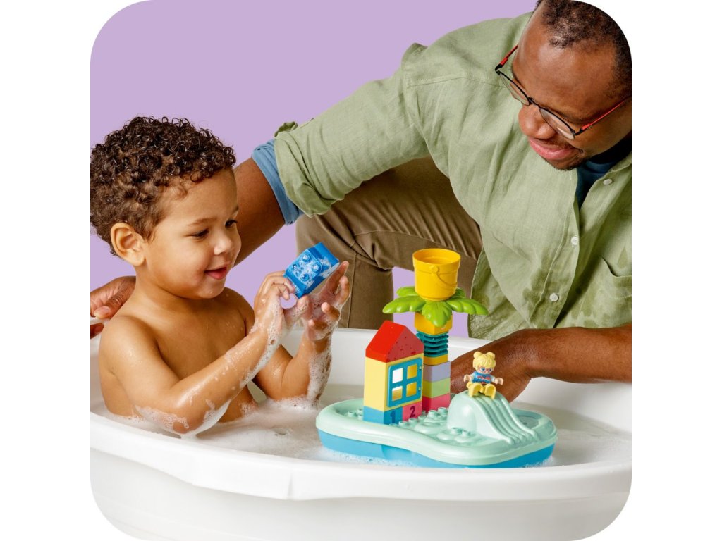 Hledáte tu nejlepší hračku do koupele pro malé děti od 2 let? Hračka LEGO® DUPLO® Město 10989 Aquapark promění koupání na zábavné učení, kdy děti prozkoumávají tento barevný aquapark. Současně seznamuje malé plaváčky s čísly a rozvíjí jejich schopnost nalévat vodu. Tuto stavebnici také snadno očistíte a uložíte.