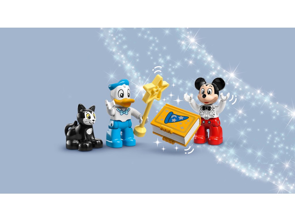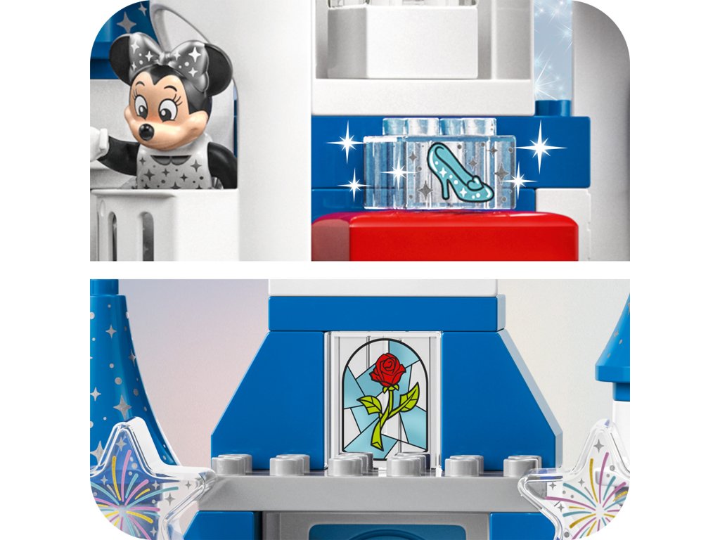 - Postavy od Disneyho – Nejmenší děti budou prozkoumávat zákoutí kouzelného hradu spolu s 5 figurkami LEGO® DUPLO®: Myšákem Mickeym, Myškou Minnie, Kačerem Donaldem, Kachnou Daisy a kočkou Figaro od Disneyho