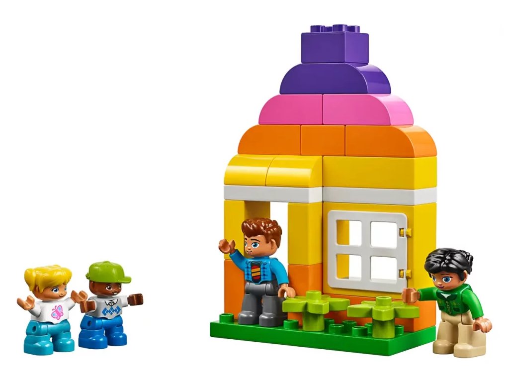 - 480 LEGO® DUPLO® dílků včetně podložky na stavění, 8 figurek, podvozků, oken, dveří a kolekce barevných kostek – obsahuje vše, co je potřeba k nastartování dětské představivosti.