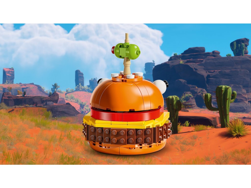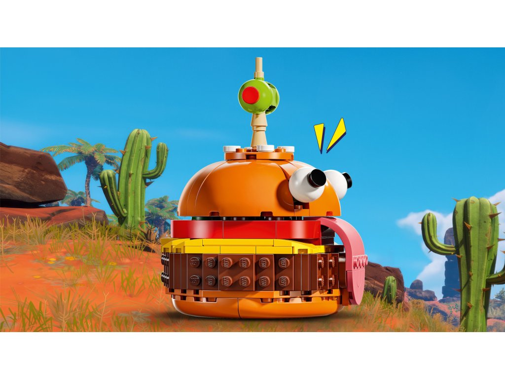 Stavebnice je inspirovaná videohrou LEGO Fortnite a fanoušci si s ní vytvoří výstavní model Durrr Burger, ikonického maskota restaurace ze světa Fortnite. Malí gameři si při stavění modelu užijí spoustu zábavy a prozkoumají jeho úchvatné detaily, včetně typických očí, jazyka a olivy na párátku.