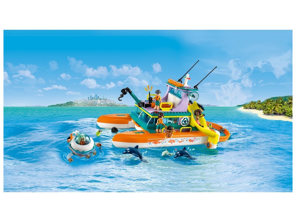 Děti od 7 let se zájmem o přírodu se s propracovanou stavebnicí LEGO® Friends Námořní záchranářská loď dozví o životě v oceánu. Stavebnice obsahuje sestavitelný katamarán, který zároveň slouží jako laboratoř, a malou ponorku. Děti si mohou přehrávat příběhy o záchraně v oceánu, proplouvat nad odpadky, chytat je do lodních sítí a recyklovat je. Nova s Aliyou netušily, že toho mají tolik společného, ale jejich společná mise je sbližuje.