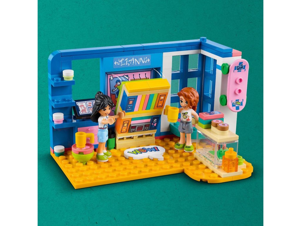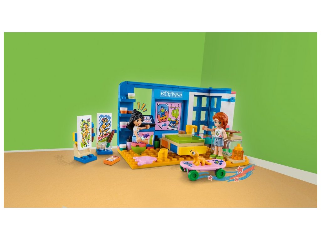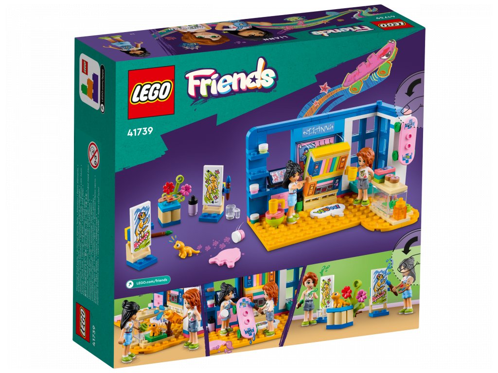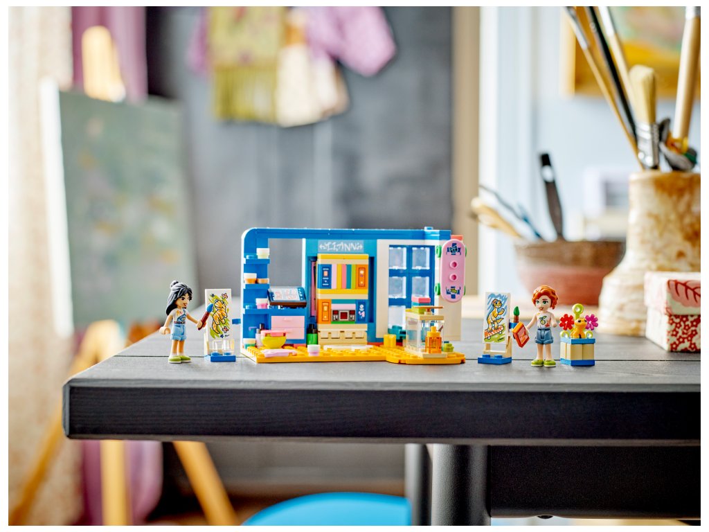 Umělecky založené děti od 6 let budou mít díky stavebnici Liannin pokoj (41739) od LEGO® Friends stále co objevovat. Těšit se mohou na umělecký stůl, výklenek s oknem a skrytou postel. Přátelství mezi energickou Liann a pohodářkou Autumn jim nabídne spoustu podnětů ke zkoumání. Děti mohou mimo jiné namalovat Liannina gekona jménem Popcorn. Součástí je také spousta doplňků, které inspirují ke kreativnímu hraní s uměleckými materiály, včetně tub s barvou, palet a stojanů. Nechybí ani koblihy, hrníčky, komiksy, skateboard, mobilní telefon, pero a terárium pro gekona Popcorna.
