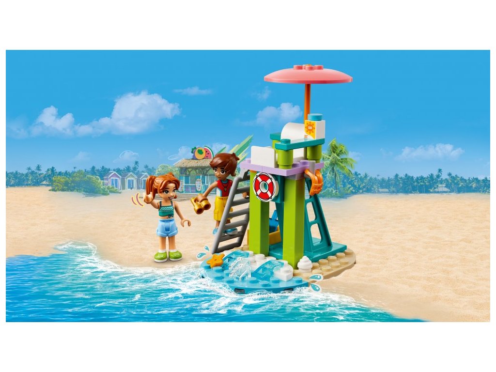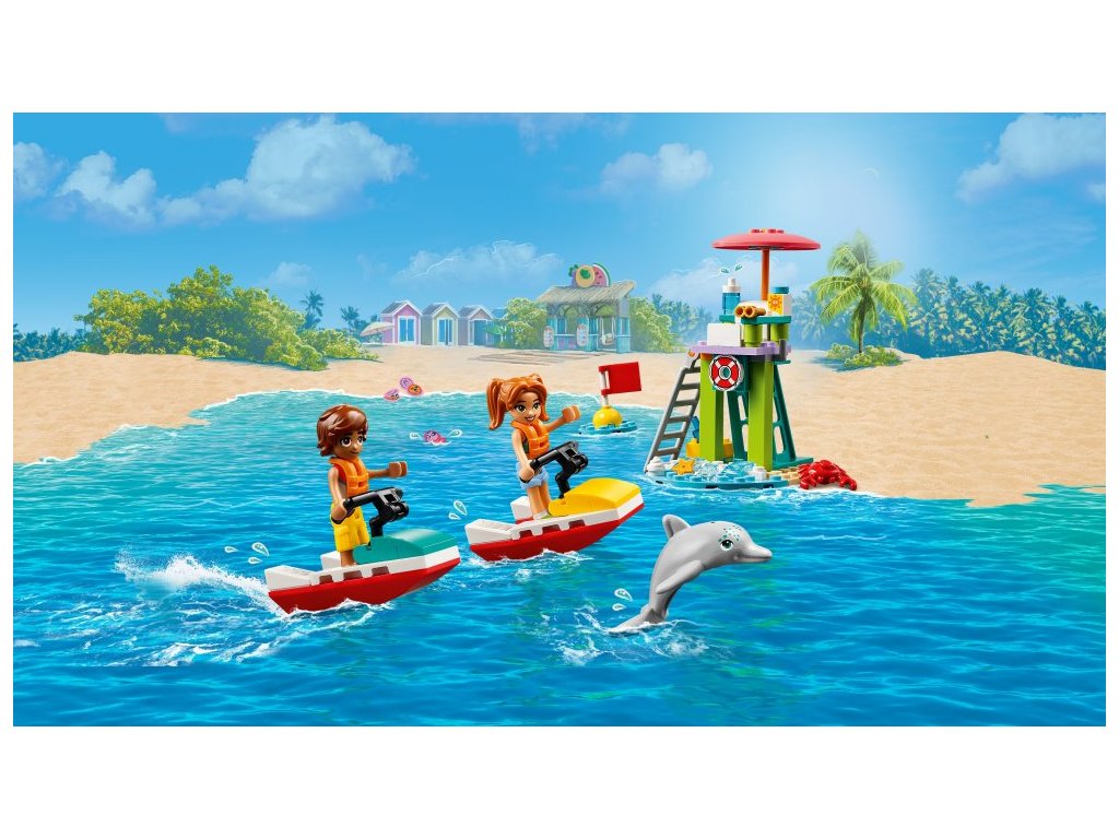 Tato stavebnice LEGO s plavčíkem obsahuje 2 modely vodních skútrů, se kterými se děti pustí do vyprávění. Plavčík Leo má dnes službu a pomocí dalekohledu pozoruje oceán. Má dokonalý výhled i na delfíny. Poté se přidá ke své kamarádce Candi a společně závodí na vodních skútrech. Děti si zamilují drobné detaily, jako je drzý krab, který rád krade nanuky z chladicího boxu!