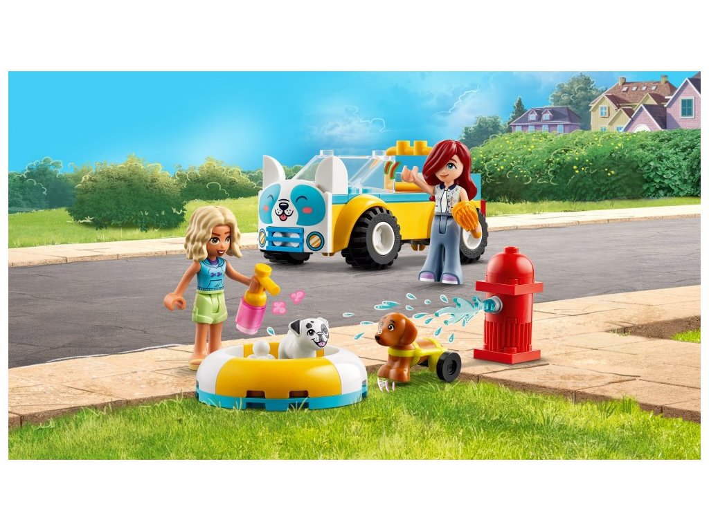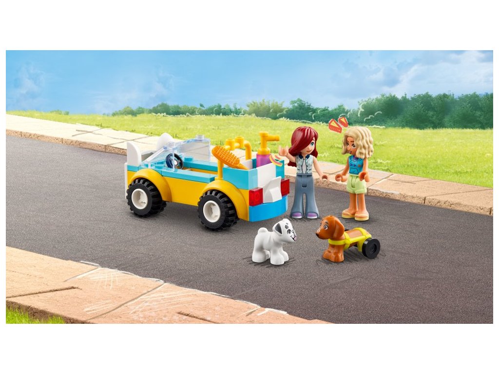 Stavebnice LEGO® Friends (42635) Pojízdný psí salón je skvělý dárek pro děti od 4 let, které se rády starají o zvířátka. Děti si užijí hodiny zábavy se 2 minipanenkami, 2 figurkami pejsků, sestavitelným vozidlem, bazénkem a spoustou doplňků pro péči o domácí mazlíčky.