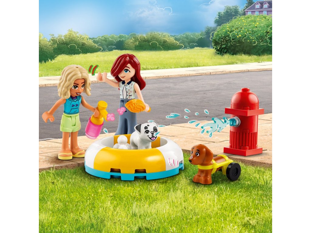 - Sestavitelné doplňky pro péči o zvířata – Děti si poskládají model vozidla s koly a bazének a nechybí doplňky, jako jsou kartáče, šampon a požární hydrant