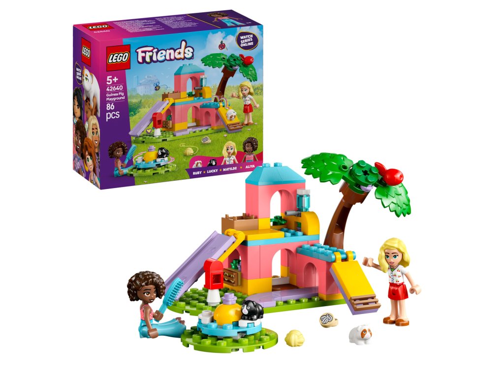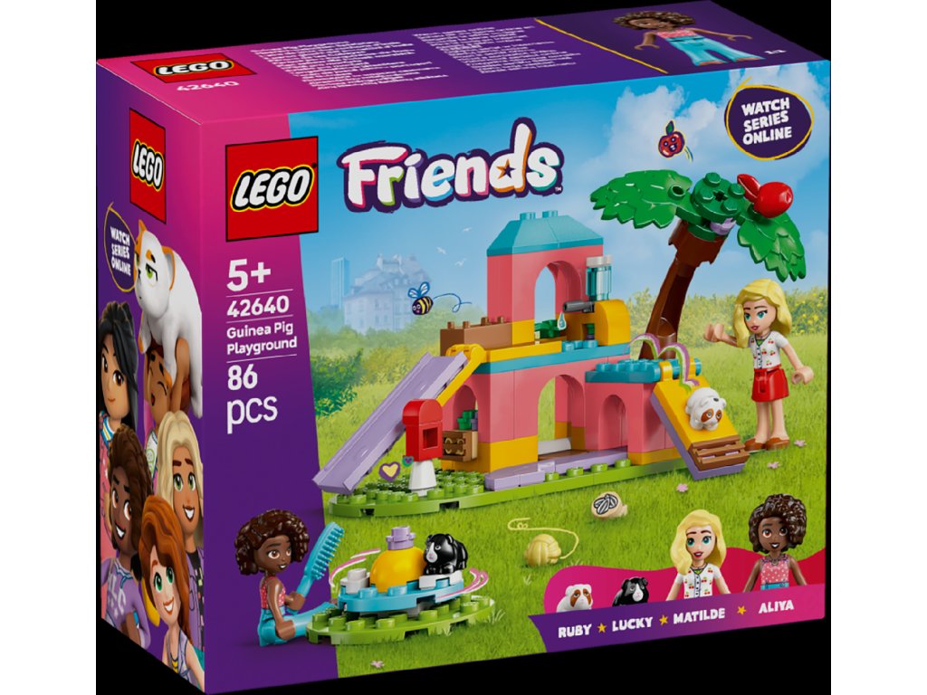 Tuto stavebnici si zamilují holky, kluci a milovníci zvířat od 5 let, kteří si vymyslí vlastní dobrodružství s morčátky. Stavebnice LEGO® Friends (42640) Hřiště pro morčata obsahuje 2 minipanenky LEGO Friends a 2 figurky morčat, se kterými si užijete hodiny zábavy.