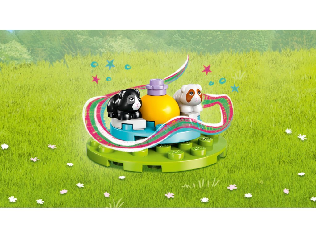 Tato stavebnice se zvířátky obsahuje vše, co zodpovědný majitel domácího mazlíčka potřebuje, včetně prostoru na hraní, krmení, kartáčování a odpočinek. Vezměte morčátka na skluzavku nebo je roztočte na kolotoči. Až bude čas na odpočinek, pomozte mazlíčkům uvelebit se v prostoru na spaní. Součástí stavebnice je řada doplňků, včetně štětce, slunečnicových semínek, listů a klubíčka příze, a sada tak představuje zábavný dárek pro malé milovníky zvířat.