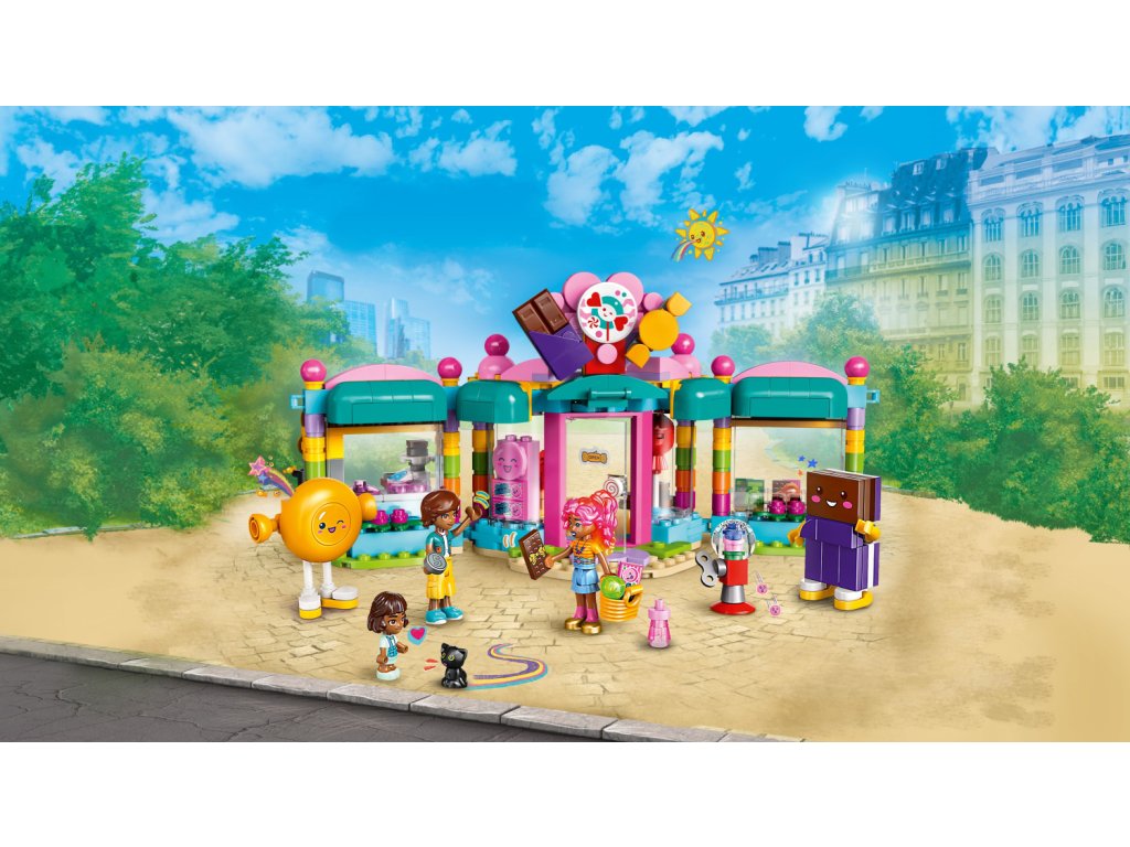 Tato stavebnice je skvělou hračkou, která podporuje sociální dovednosti dětí. Malí stavitelé zinscenují interakce se zákazníky nebo si vymyslí příběhy o Leovi a jeho mladší sestře Albě. Stavebnice je nabitá funkcemi a doplňky s cukrovinkami, jako je nabídka řady sladkostí, obří lízátko, automat na žvýkačky a pokladna. Součástí modelu je také prostor na výrobu cukrovinek různými s přísadami, nůžkami a hrncem na vaření. A nezapomeňte pozdravit dva maskoty obchodu – čokoládovou tyčinku a zabalený bonbón!