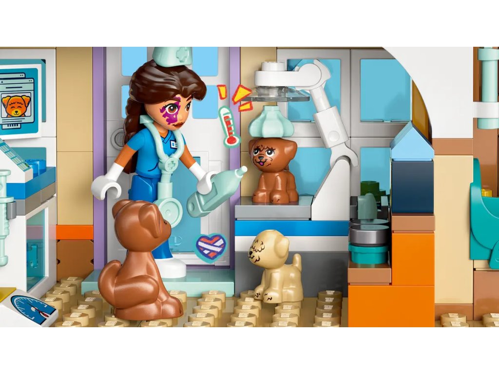 - Veterinární doplňky – Tato stavebnice se zvířátky obsahuje spoustu zábavných doplňků pro hraní, včetně pokladny, slunečnic, krmiva pro domácí mazlíčky, pokrývky hlavy pro veterinářku, hovínek, šamponu a mýdla