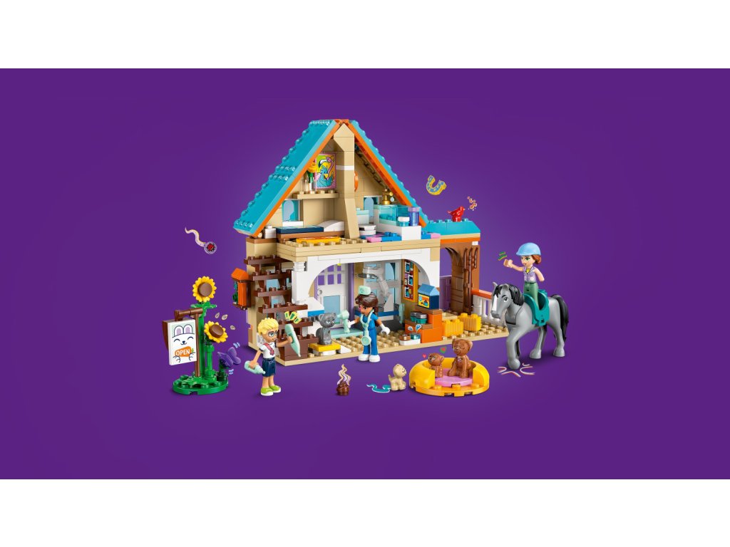 Malí stavitelé si užijí hodiny zábavy při vymýšlení nekonečných příběhů o péči o zvířátka. Součástí stavebnice je pracovní prostor pro veterinářku Eniko s vyšetřovacím stolem, krmivem pro domácí mazlíčky, veterinárním vybavením a váhou na vážení zvířat. Ve stáji najdete seno, vidle, kartáč, sedlo a psací podložku s rentgenem koně. Děti se můžou hrát na příběhy o majitelích domácích mazlíčků, když Olly přijde se svou kočku k veterinářce a Autumn navštíví svého koně. Veterinářka má své vlastní domácí mazlíčky – psa a dvě štěňátka. Po kontrole zvířátek Eniko zamíří nahoru, kde má ložnici a koupelnu.