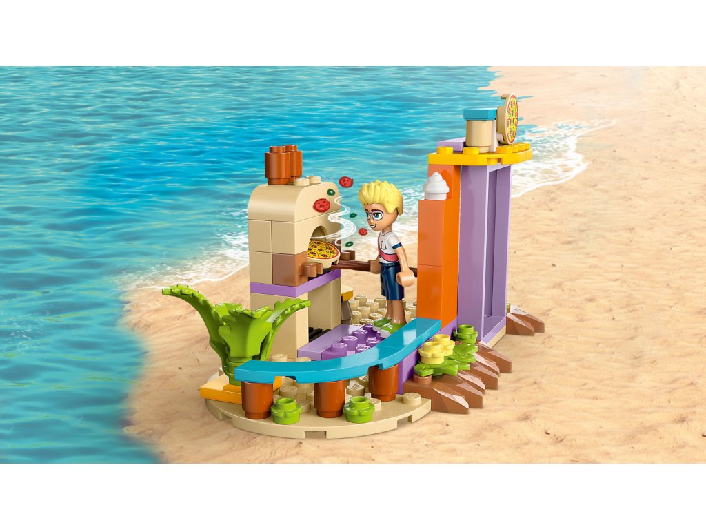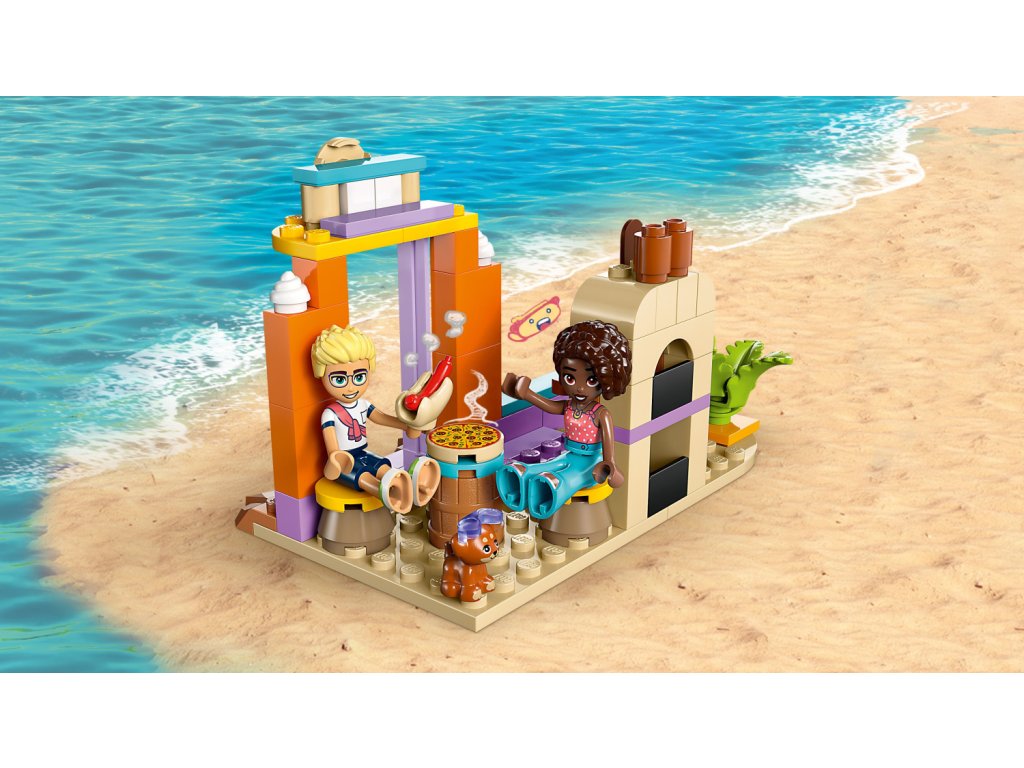 - Obsahuje 2 minipanenky a figurky psa a delfína – Součástí stavebnice jsou postavy a spousta plážových doplňků, včetně surfovacího prkna, rádia, pizzy, opalovacího krému a zmrzliny