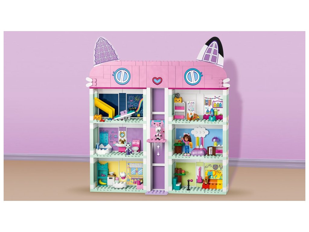 Gábinin kouzelný domek má 8 barevných pokojů propojených posuvným výtahem. V každém pokoji čeká na děti spousta aktivit. Mohou například péct v kuchyni, projet se na skluzavce v herně, tvořit v uměleckém pokoji, hrát na klavír v hudebním pokoji, relaxovat v koupelně, zdřímnout si v ložnici nebo se vydat na střechu a rozjet párty s otáčecím tanečním parketem. Parťáky jim budou 4 oblíbené postavy ze seriálu: Gábi, Pandy Ťapka, Dortě a Rybočka. Součástí je návod na stavění v podobě příběhu a aplikace LEGO Builder obsahuje intuitivní nástroje přiblížení a otáčení modelu. Začátečnická kostka zajistí, aby se děti mohly rovnou pustit do stavění.