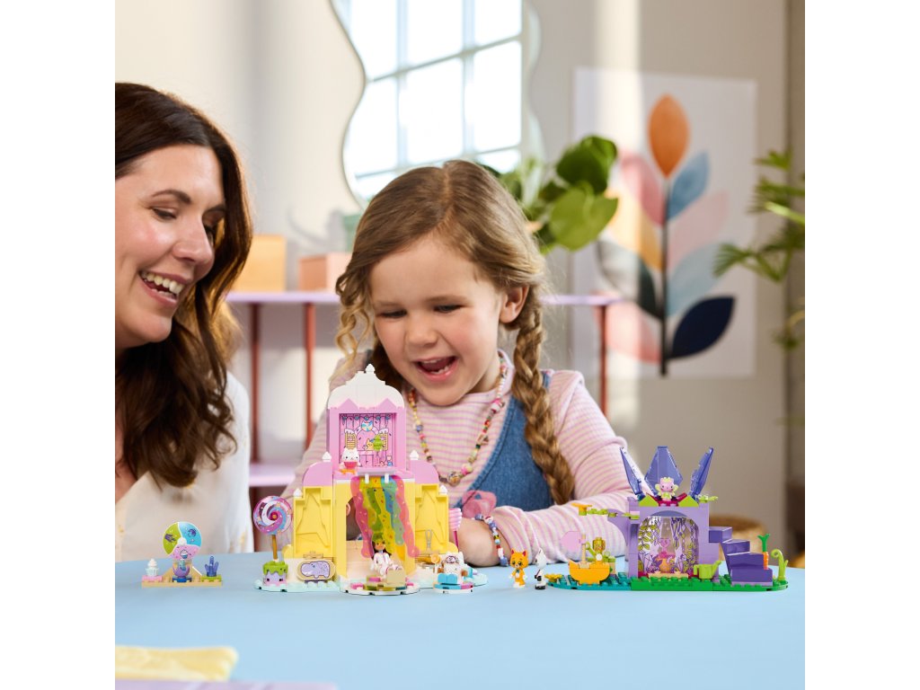 - Zábava s Gábi a kamarády – Stavebnice obsahuje figurky LEGO® včetně Gábi, Pandy Ťapky a Víly kočičky a 2 klíčová místa z filmu Gábinin kouzelný domek ve filmu