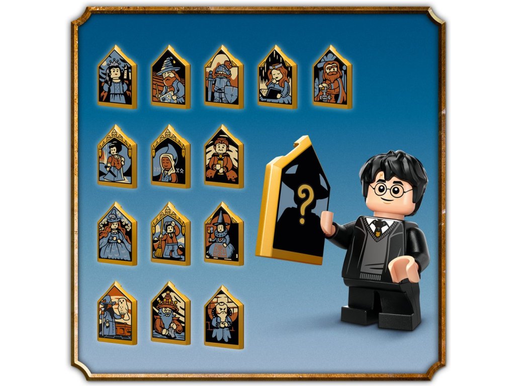 - 1 ze 14 sběratelských bradavických portrétů – Součástí této stavebnice pro děti je zlatý dílek s 1 ze 14 náhodných bradavických portrétů, který si lze vystavit v loděnici