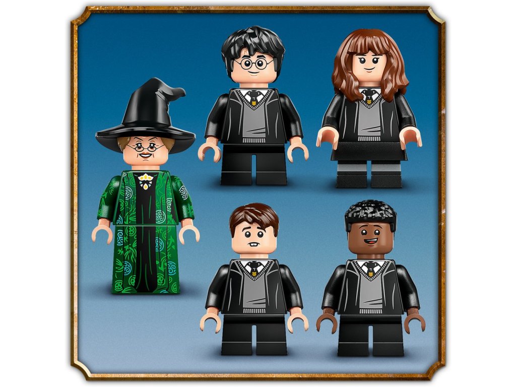 - 7 postav LEGO® Harry Potter™ – Minifigurka Harryho Pottera, Nevilla Longbottoma, Deana Thomase, Hermiony Grangerové a profesorky McGonagallové a figurka sovy Hedviky a ropuchy Trevora