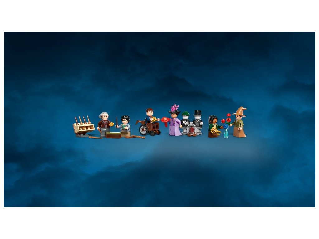 - Nechybí 6 sběratelských minifigurek LEGO® Harry Potter™ – Harry Potter, Garrick Ollivander™, madame Malkinová, Padma Patilová, student magie a čarodějnici s prodejním vozíkem plným květin