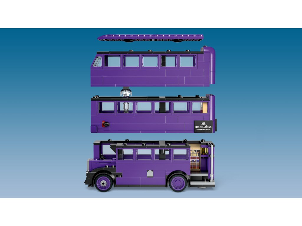 - Nejdetailnější model Záchranného kouzelnického autobusu z kostek LEGO® – Horní patra autobusu lze oddělit a snadno se dostat do interiéru, ve kterém najdete pohyblivé postele a kývající se lustr
