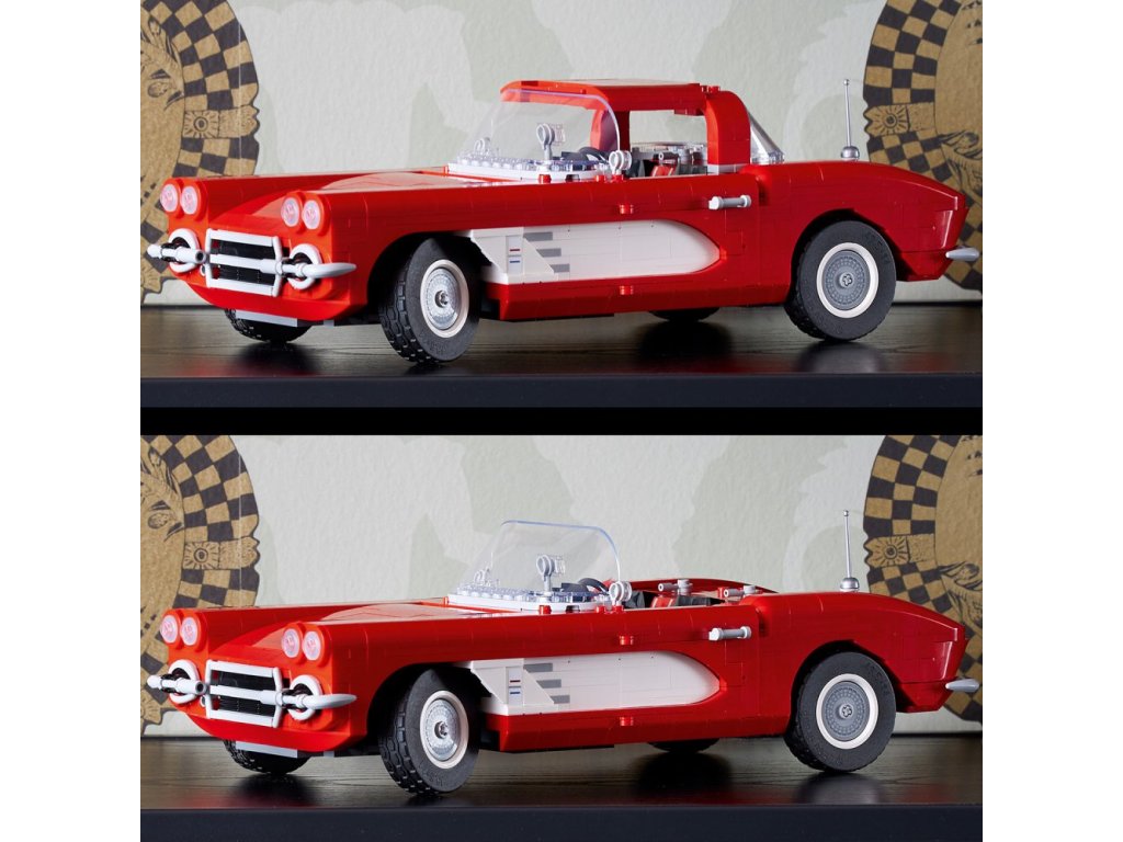 - Co se ukrývá v krabici? – Vše, co potřebujete k stavení propracované repliky sportovního kabrioletu LEGO® Corvette z roku 1961