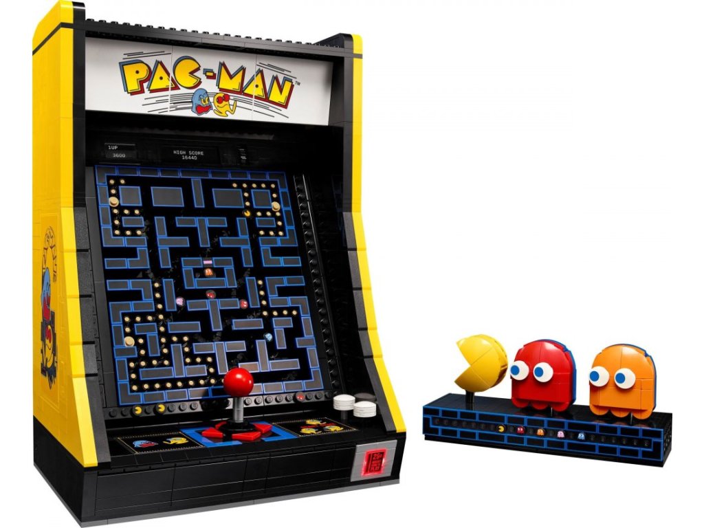 Tato replika z kostek LEGO má spoustu retro designových detailů a zábavných funkcí, včetně čtyřsměrného joysticku a osvětleného otvoru na mince. Otočením rukojeti aktivujete mechanické bludiště, které představuje klasickou honičku mezi vašimi oblíbenými postavami, nebo otevřete zadní panel a prohlédněte si mechanické prvky automatu. Můžete postavit arkádovou scénu z 80. let s herní minifigurkou a vitrínou s otočnými figurkami PAC-MANA, BLINKYHO a CLYDEA.