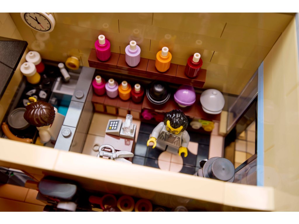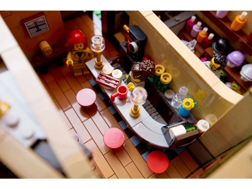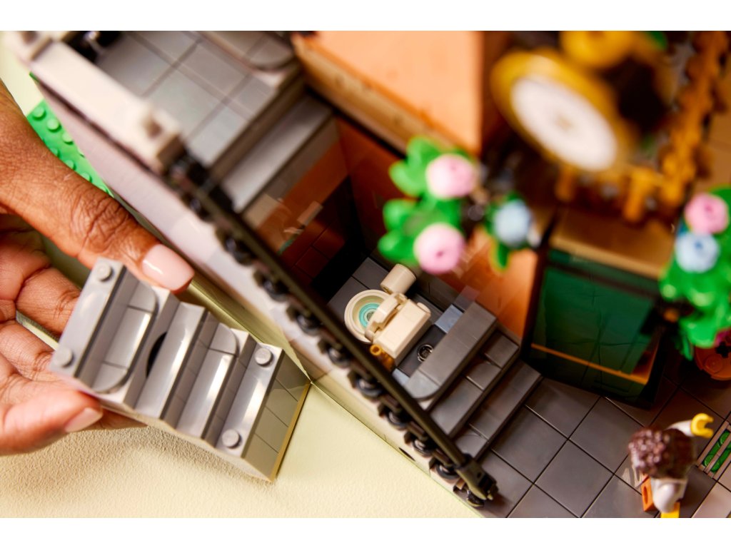 Součástí stavebnice jsou 3 fasády v cihlovém a dřevěném stylu doplněné řadou oken, venkovní schodiště a strmá červená střecha s rustikálními komíny. V interiéru najdete restauraci s pultem, stoličkami a stolem, galanterii s klobouky a deštníky, hodinářskou dílnu s nočním stolkem a stojacími hodinami a útulný podkrovní byt. Tato ozdobná stavebnice se bude skvěle vyjímat v kanceláři nebo doma a součástí je 8 minifigurek. Modulární design budovy vám umožní přeuspořádat jednotlivé místnosti a nabízí nekonečné možnosti vystavování a vyprávění příběhů.