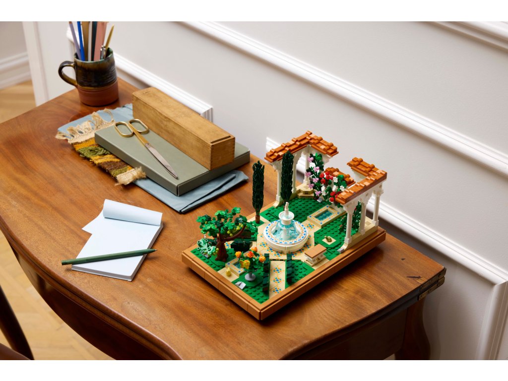 - Ozdobná stavebnice zahrady pro dospělé – Relaxujte při stavění tvůrčího projektu LEGO® Icons Zahrada s fontánou