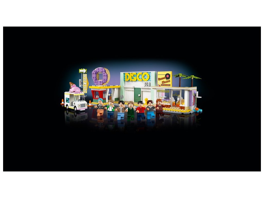 - Postavte scény z videa – Vytvořte z kostek LEGO® diskotéku, obchod s hudebními deskami a obchod s donuty se spoustou autentických detailů, zmrzlinářský vůz, basketbalový koš a 2 palmy