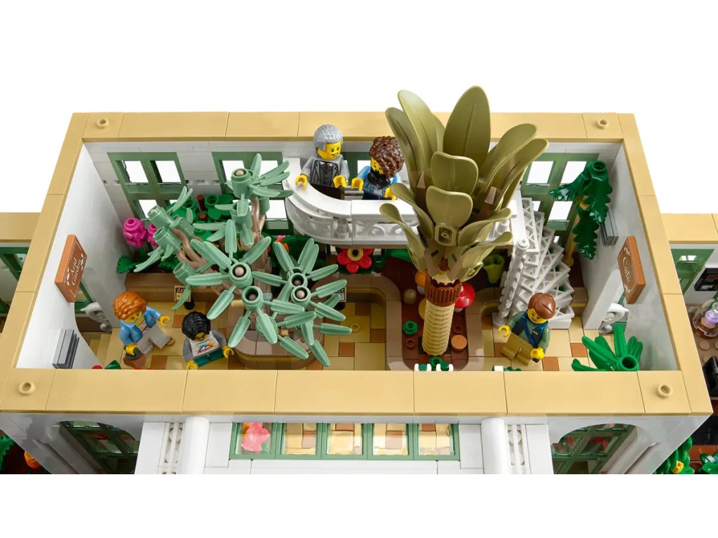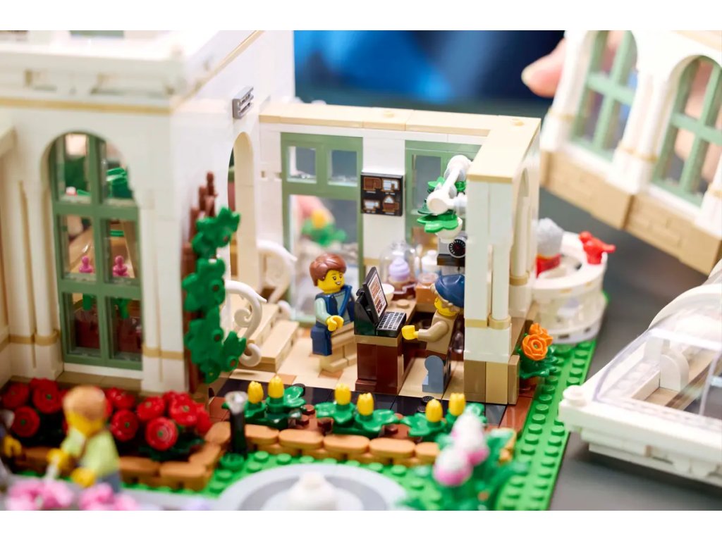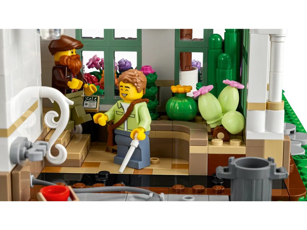 - 12 minifigurek LEGO® – Součástí jsou 4 zaměstnanci (manažer, 2 zahradníci a barista), různí návštěvníci a figurka psa, veverky, králíčka, 4 ptáčků a brouka