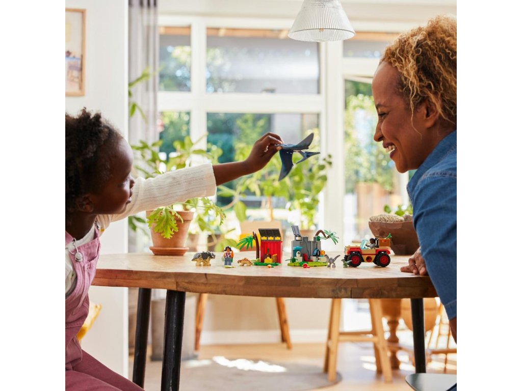 - Hračka s dinosauřím mládětem – Seznamte děti od 4 let s řadou LEGO® Jurassic World a darujte jim akční stavebnici Záchranářské středisko pro dinosauří mláďata, která v nich probudí touhu pečovat o zvířata