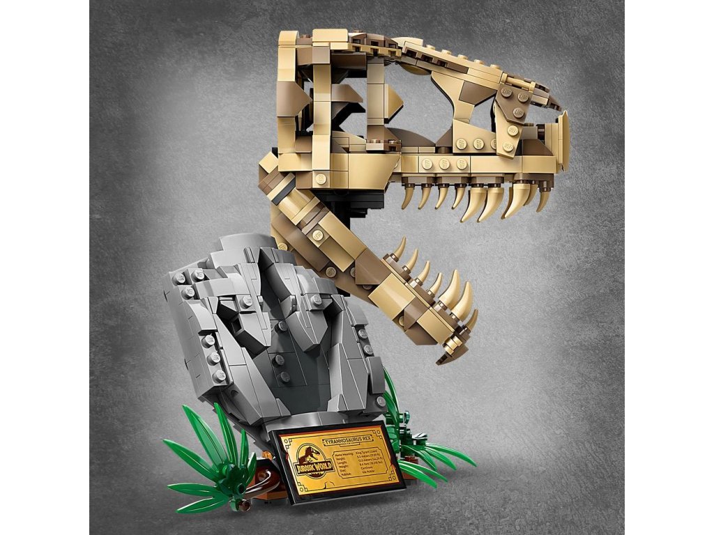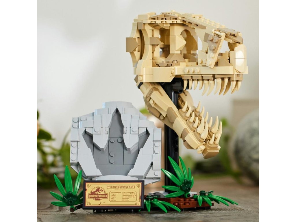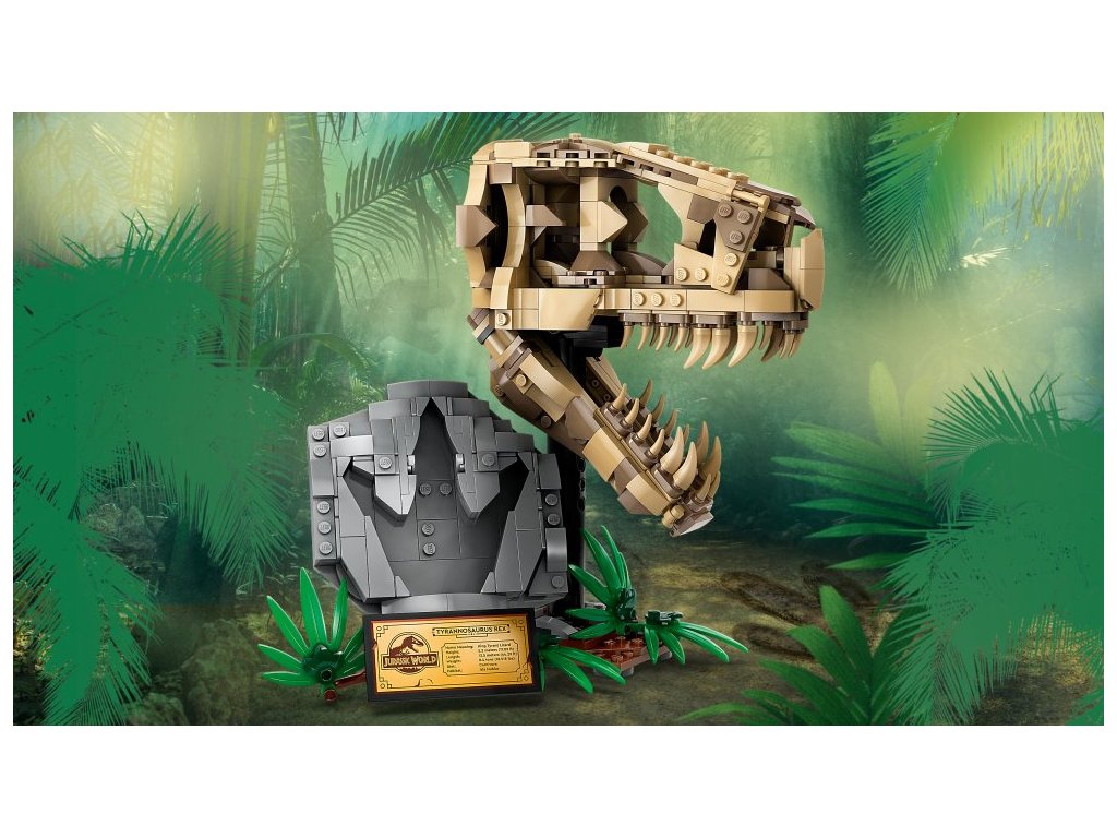 Stavebnice LEGO® Jurassic World (76964) Dinosauří fosilie: Lebka T-rexe je skvělý dárek pro děti od 9 let, které zbožňují dinosaury, a pro malé archeology. Středobodem této zcela první stavebnice z řady Jurassic World určené na výstavku je lebka s otevírací čelistí a nechybí ani podstavec s informační plaketou, ukrytý dílek „jantaru“ na zadní straně modelu a „zkamenělá“ stopa.