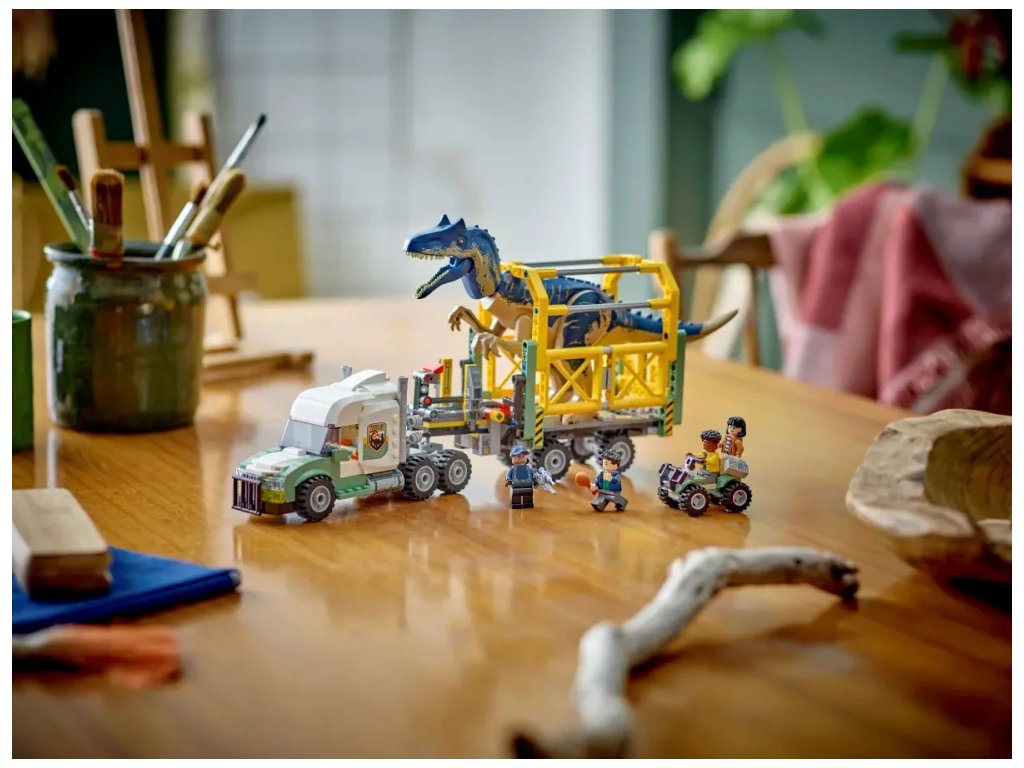 - Hračka s allosaurem – Dopřejte fanouškům dinosaurů od 8 let stavebnici Dinosauří mise: Přeprava allosaura, která spojuje dětskou lásku k dobrodružství, zvířatům a velkolepým příběhům s hrdiny