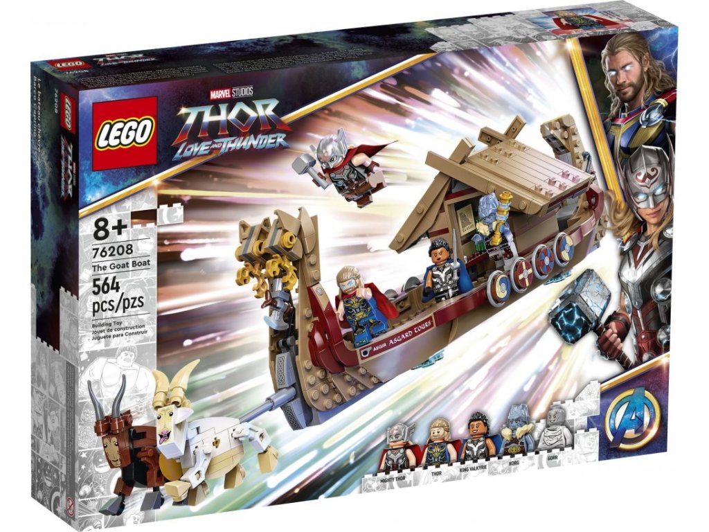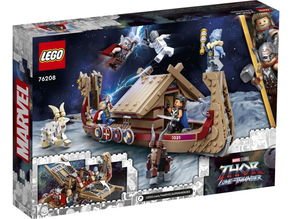 - Thorova vikingská loď – stavebnice LEGO® Marvel Loď s kozím spřežením (76208) dětem umožňuje přehrávat si scény z filmu Thor: Love and Thunder z dílny studia Marvel