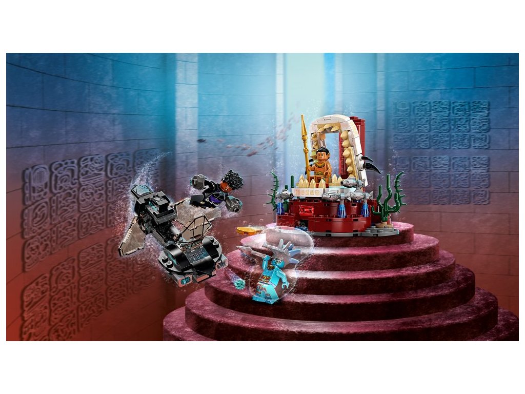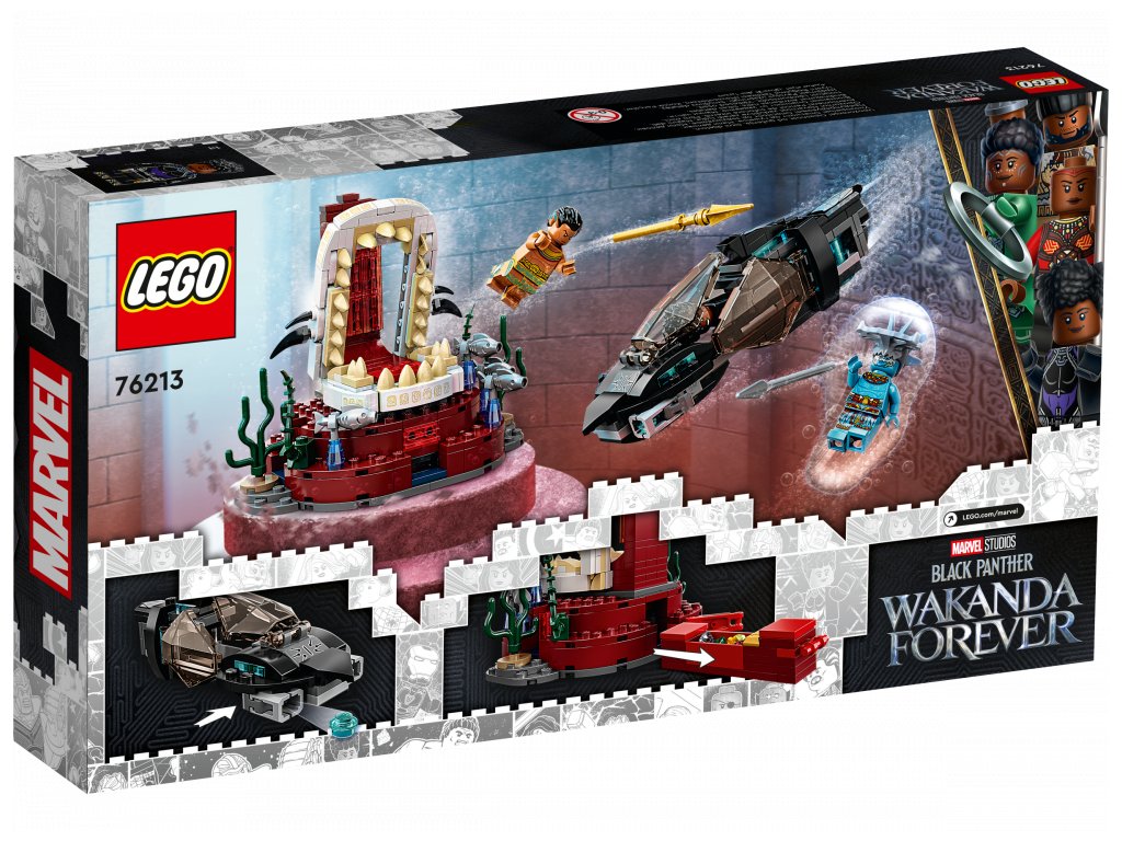- Zbožňované postavy – obsahuje minifigurky Shuri, Attumy a krále Namora. Sestavitelný model ponorky a trůnního sálu podtrhují stylové doplňky