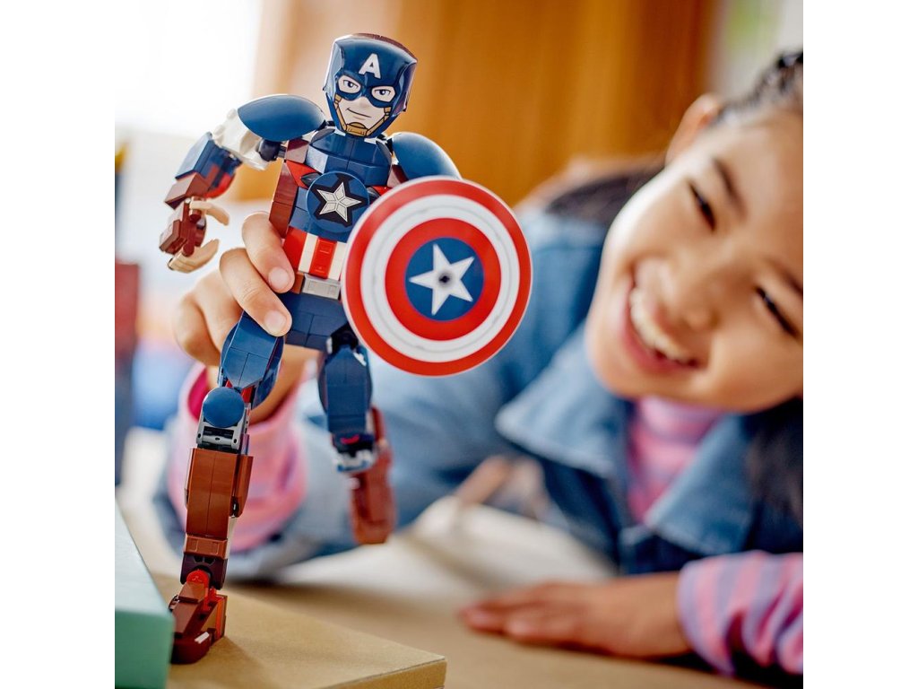 Sběratelská figurka od Marvel Avengers umožňuje neomezené možnosti stavění, hraní a vystavování. Má pohyblivé klouby ramen, paží, kyčlí a nohou, díky nimž je děti mohou polohovat a vydávat se s nimi na nekonečné vzrušující mise. Přenosná figurka se pyšní spoustou autentických detailů, jako je jeho proslulý štít, který lze připevnit k ruce nebo k zádům podle toho, na jakou akci se superhrdina chystá. Stavitelé mohou přibližovat a otáčet modely ve 3D a sledovat pokrok pomocí zábavné a intuitivní aplikace LEGO® Builder.