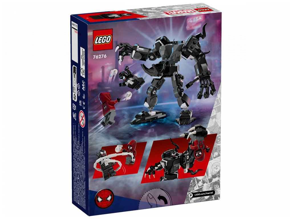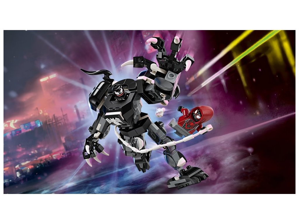 Sestavitelné robotické brnění Venoma má spoustu funkcí, včetně plně pohyblivých paží, nohou a rukou s drápy, které jsou dostatečně velké na to, aby uchopily minifigurku. Otevřete hrudník brnění a odhalte kokpit pro minifigurku Venoma. Nechybí ani minifigurka Milese Moralese se 2 ručními vystřelovači pavučin a ohebným pavučinovým „lanem“, které lze hned na několika místech připevnit k robotickému brnění Venoma. Děti mohou tuto stavebnici kombinovat s dalšími robotickými brněními z řady LEGO Marvel (prodávají se samostatně) a rozšířit nápadité herní možnosti. Pro ještě více digitální zábavy je zde zábavná a intuitivní aplikace LEGO Builder, kde mohou stavitelé přibližovat a otáčet modely ve 3D a sledovat postup.