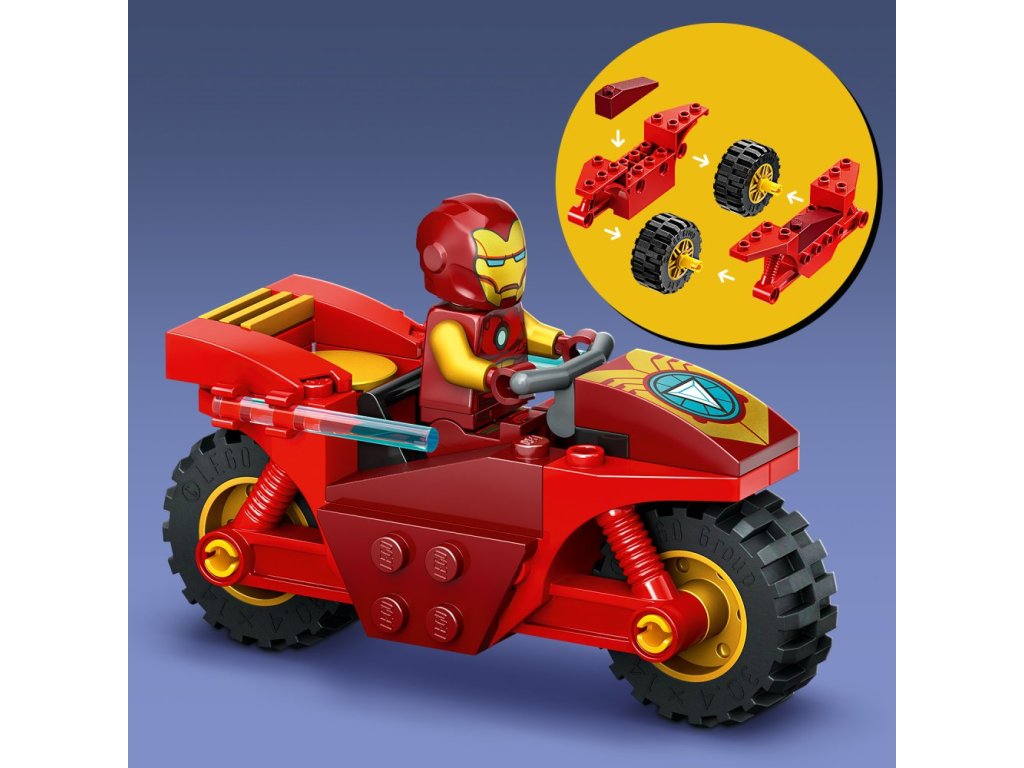 - Superhrdinská stavebnice s minifigurkami – Obsahuje minifigurky Iron Mana a Neuvěřitelného Hulka, Iron Manovu sestavitelnou motorku, sestavitelný dům a zábavné doplňky