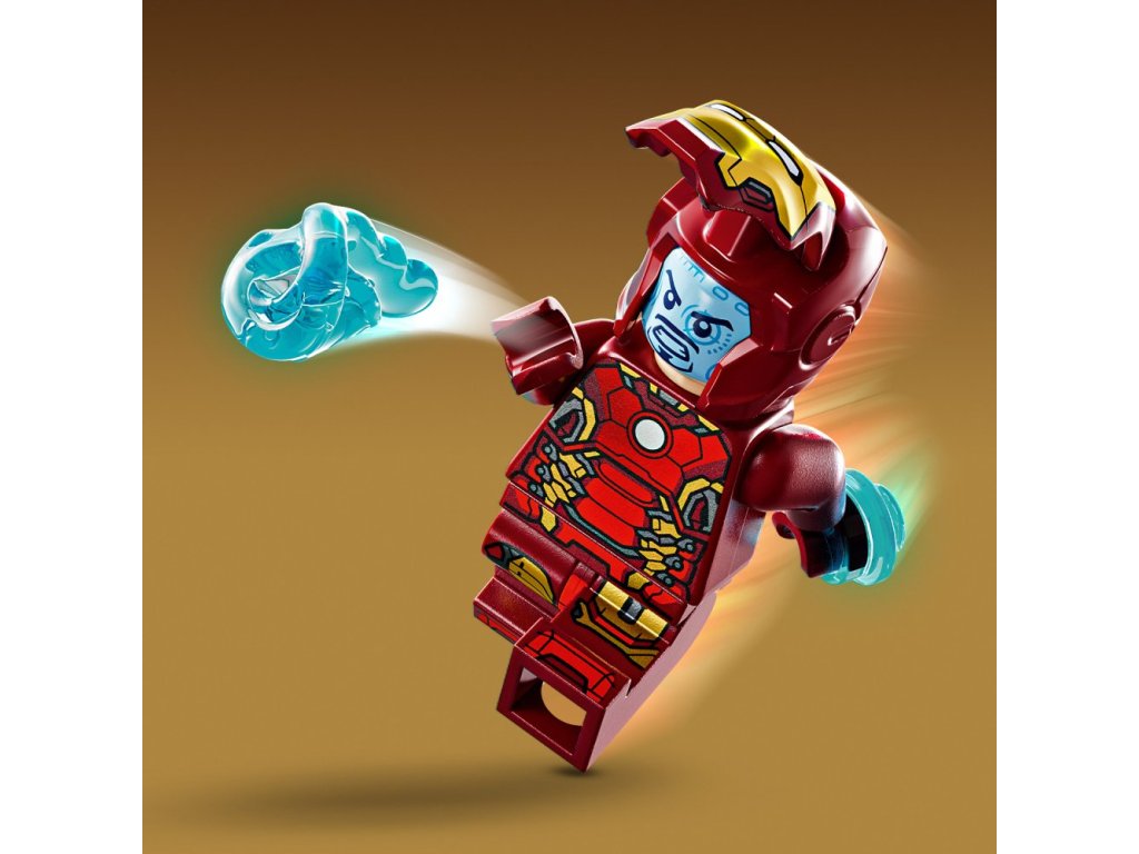 - Autentické detaily – Minifigurka Iron Mana má otevírací hledí a drží energetický blaster. Voják Hydry má vystřelovač. Speciální kostky vytvářejí dojem, že minifigurky létají