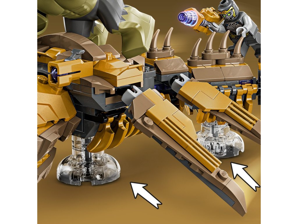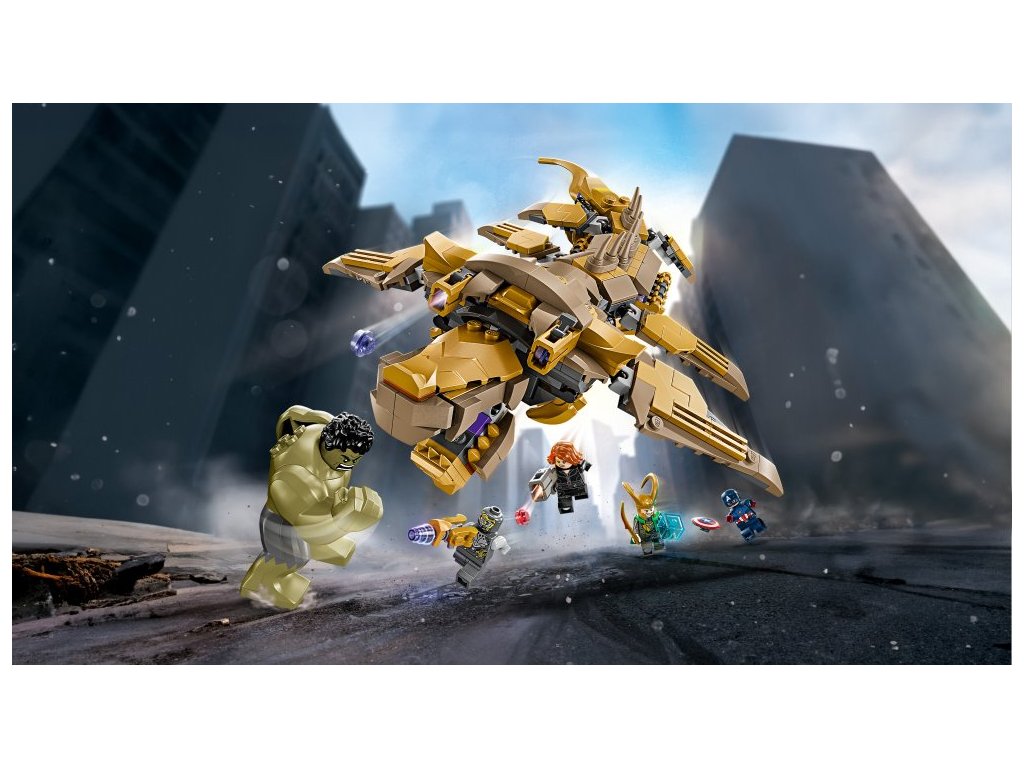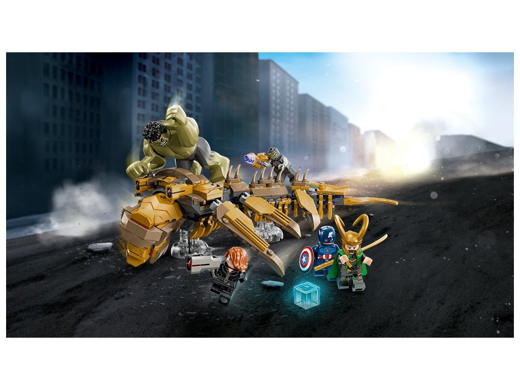 Sada obsahuje 4 minifigurky – Kapitána Ameriku se štítem, Black Widow s vystřelovačem, Lokiho s pláštěm a helmou a válečníka Chitauriho s laserovou pistolí – k tomu navíc velkou figurku Hulka. Sestavitelný Leviathan má 6 pohyblivých ploutví, otevírací tlamu, hlavu, kterou lze mírně otočit do strany, a 2 vystřelovače. Leviathan je dodáván s průhlednými stojany, které umožňují minifigurkám během hraní „létat“. Vystavení je díky nim ještě působivější. Intuitivní aplikace LEGO Builder dětem umožní přibližovat si modely, otáčet je ve 3D, ukládat stavebnice a sledovat postup při stavění.