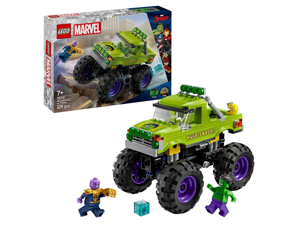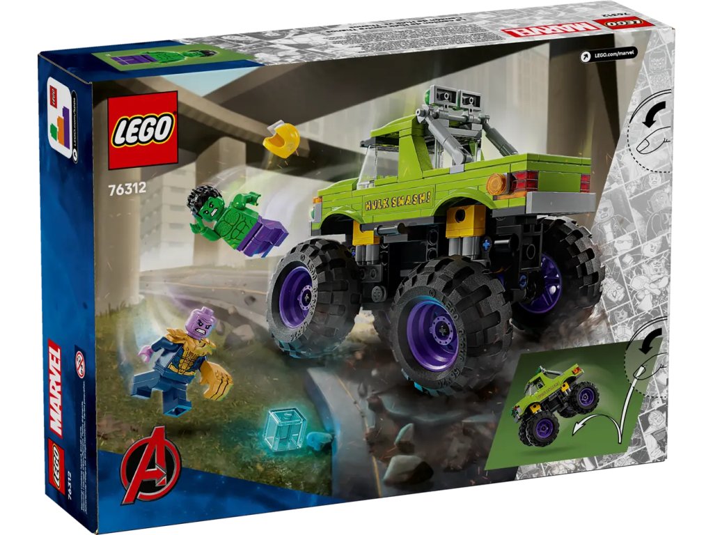 Tento sestavitelný výkonný truck LEGO ? Marvel obsahuje minifigurku Hulka s odnímatelnou helmou a minifigurku Thanose s teseraktem a Rukavicí nekonečna. Superhrdinský truck má zvedací kabinu s přístupem na sedadlo řidiče a místem pro minifigurku Hulka. Vnější strana trucku je zelená a zdobí ji nápis „Hulk Smash!“ a Hulkův obličej. Díky velkým otočným kolům, robustní konstrukci a odpružení zvládne tento mega truck i ty nejnáročnější mise. Pro ještě větší digitální zábavu si stavitelé můžou přibližovat a otáčet modely ve 3D a sledovat svůj pokrok pomocí zábavné a intuitivní aplikace LEGO Builder. Model obsahuje 229 dílků.