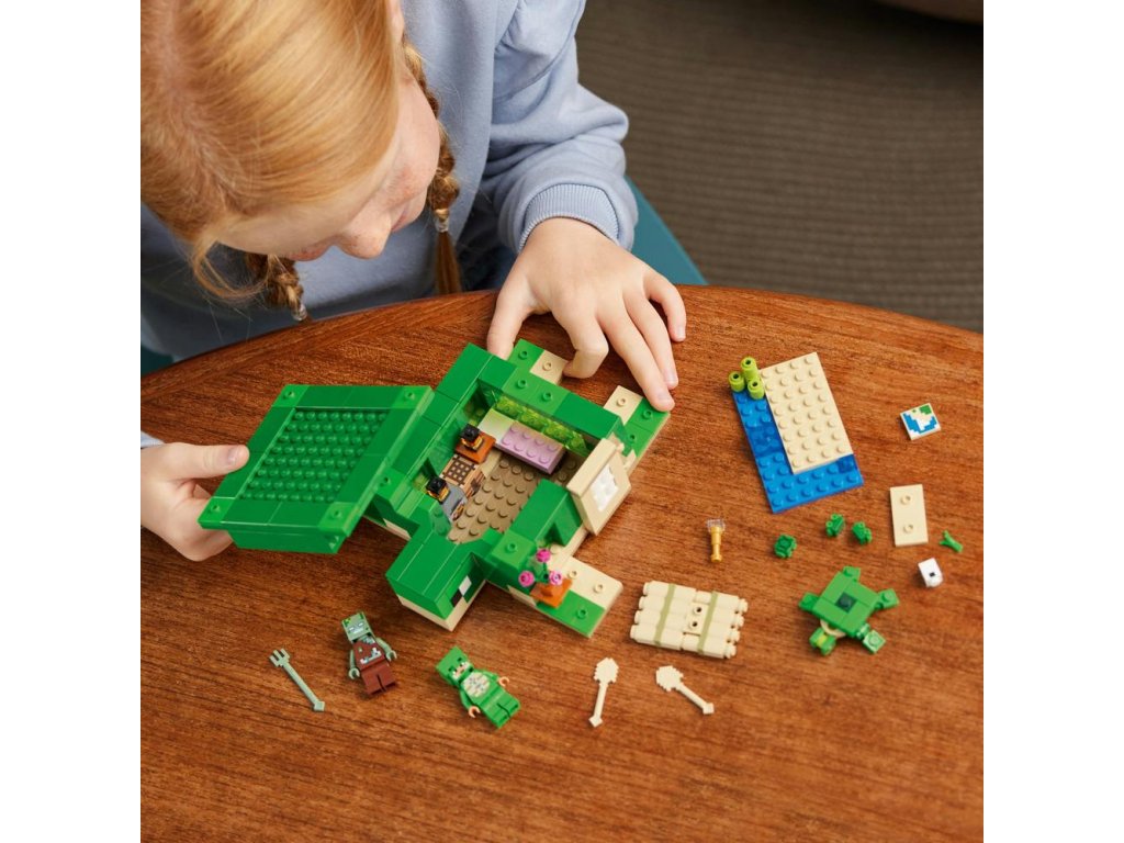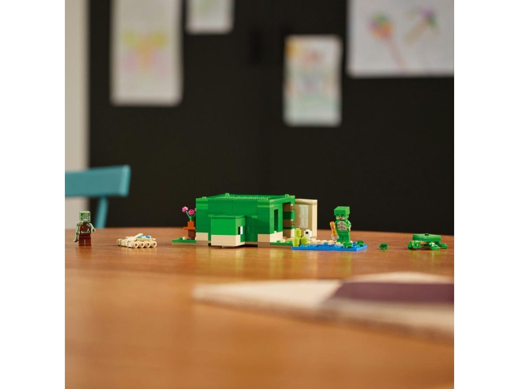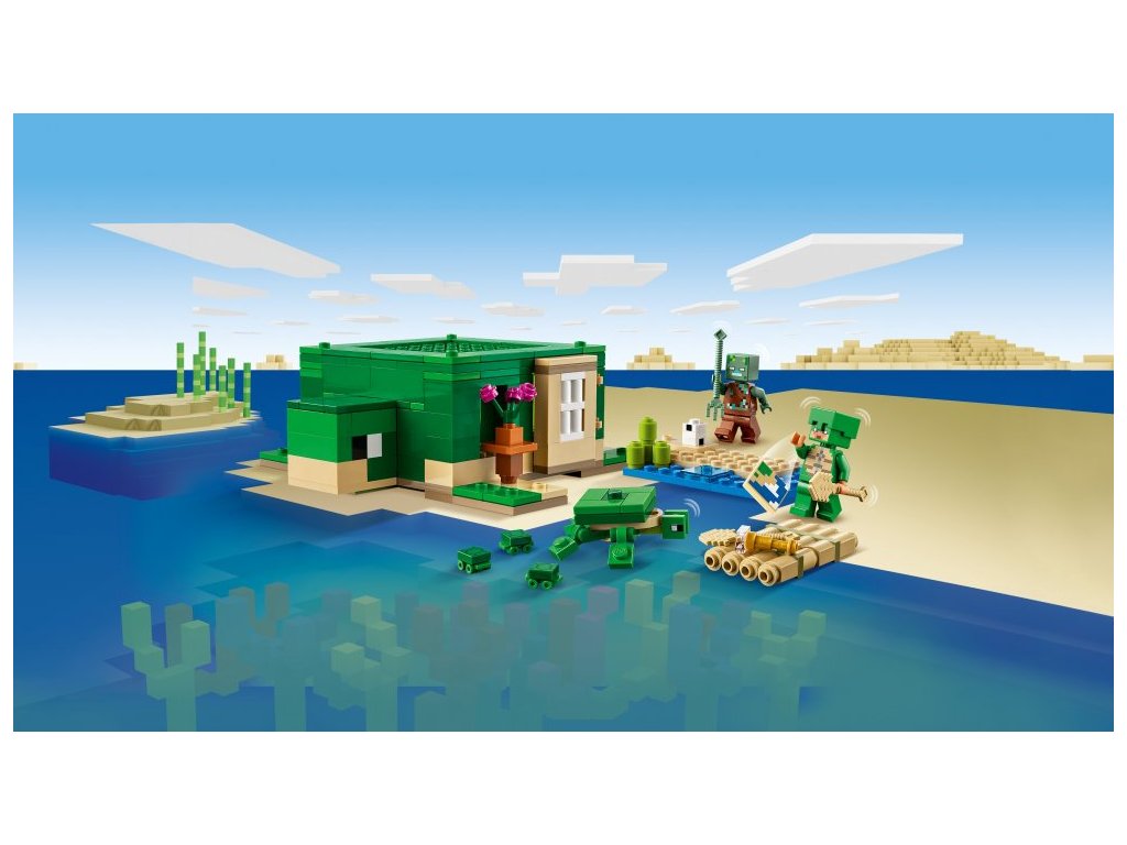 - Hráči s užijí péči o zvířátka – Součástí stavebnice LEGO® Minecraft® je sestavitelný dům se 3 figurkami: želvím válečníkem, želvou a utopencem