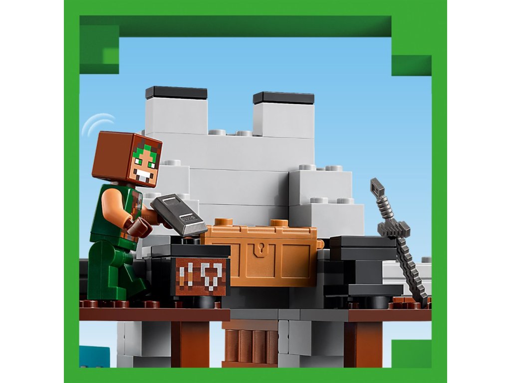 - Kreativní herní stavebnice s hradem – Součástí stavebnice je stůl na tvoření, vysoká pec, kovadlina a kovářský stůl a také figurka LEGO® Minecraft® krotitele vlků, 2 kostlivce a 2 vlky