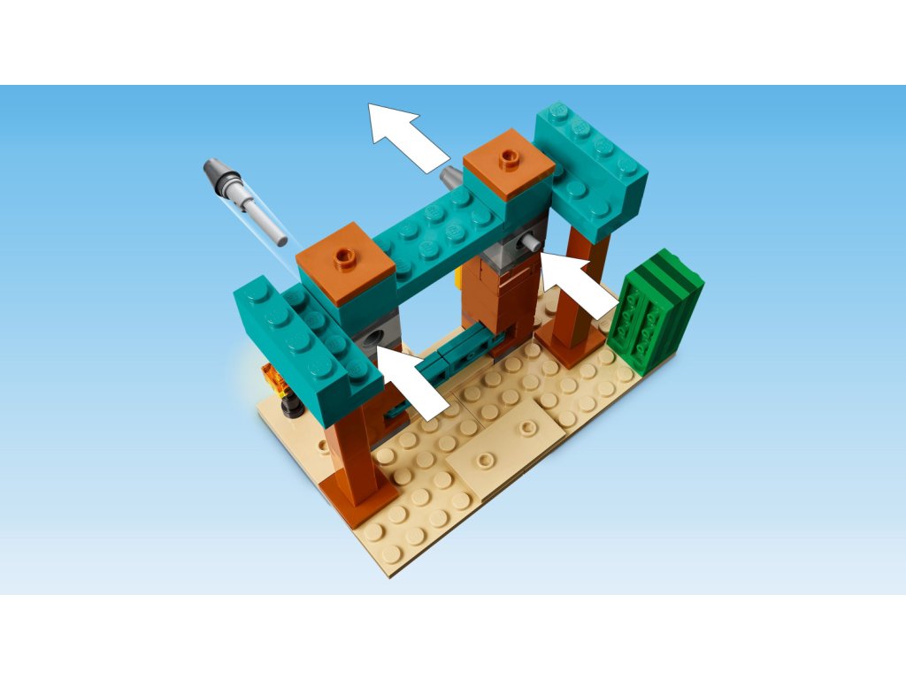 - Stavebnice s pouštním hradem – Tato malá stavebnice LEGO® pro děti je plná akčních soubojů ze hry Minecraft® a malí stavitelé s musí ubránit sud plný pokladů