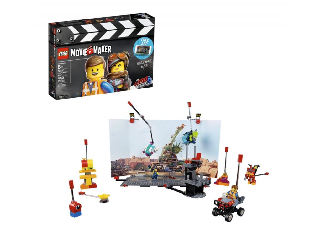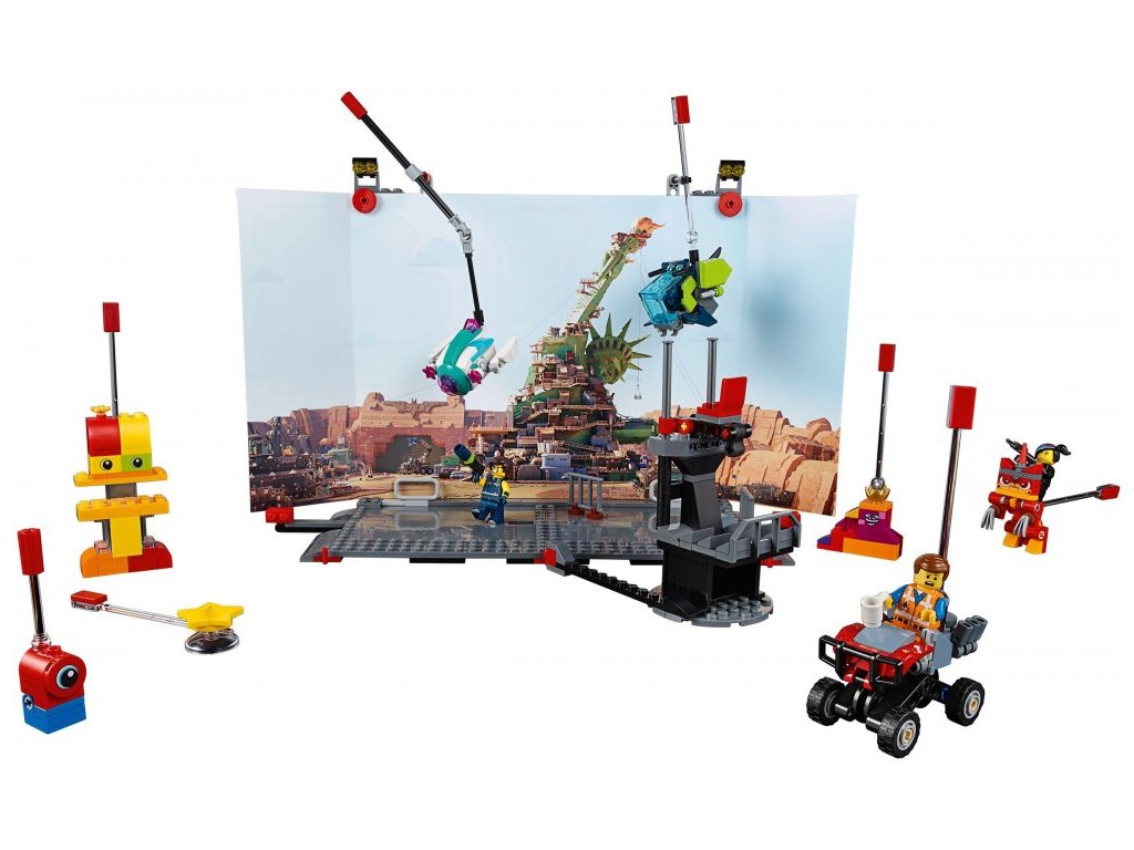 Natoč si svůj vlastní film se sadou 70820 LEGO® Movie Maker k filmu LEGO PŘÍBĚH 2, která obsahuje scénu, stojan na kameru pro tvůj chytrý telefon a spoustu akčních rekvizit. Scéna zahrnuje rám s posuvnými nastavitelnými rameny v horní části pro uchycení rekvizit, postav a dalších prvků, oboustranné pozadí s alternativními prostředími, a navíc podložku se zabudovanými posuvníky, díky kterým můžeš s postavami pohybovat. Připoj stojan na některé ze 3 míst na scéně a získej záběry z různých úhlů. Tato sada k filmu LEGO PŘÍBĚH 2 obsahuje i akční rekvizity, včetně Emmetovy únikové buginy a Rexova Rexploreru, 3 minifigurky, figurku minipanenky, 4 sestavitelné figurky a figurku raptora.