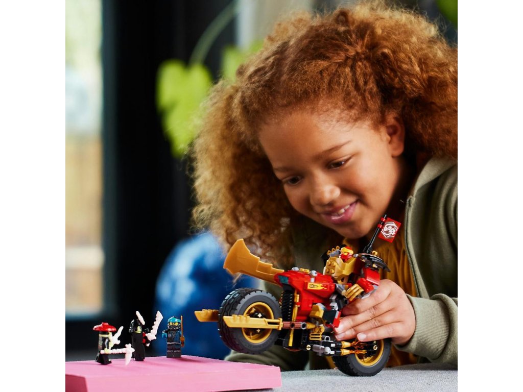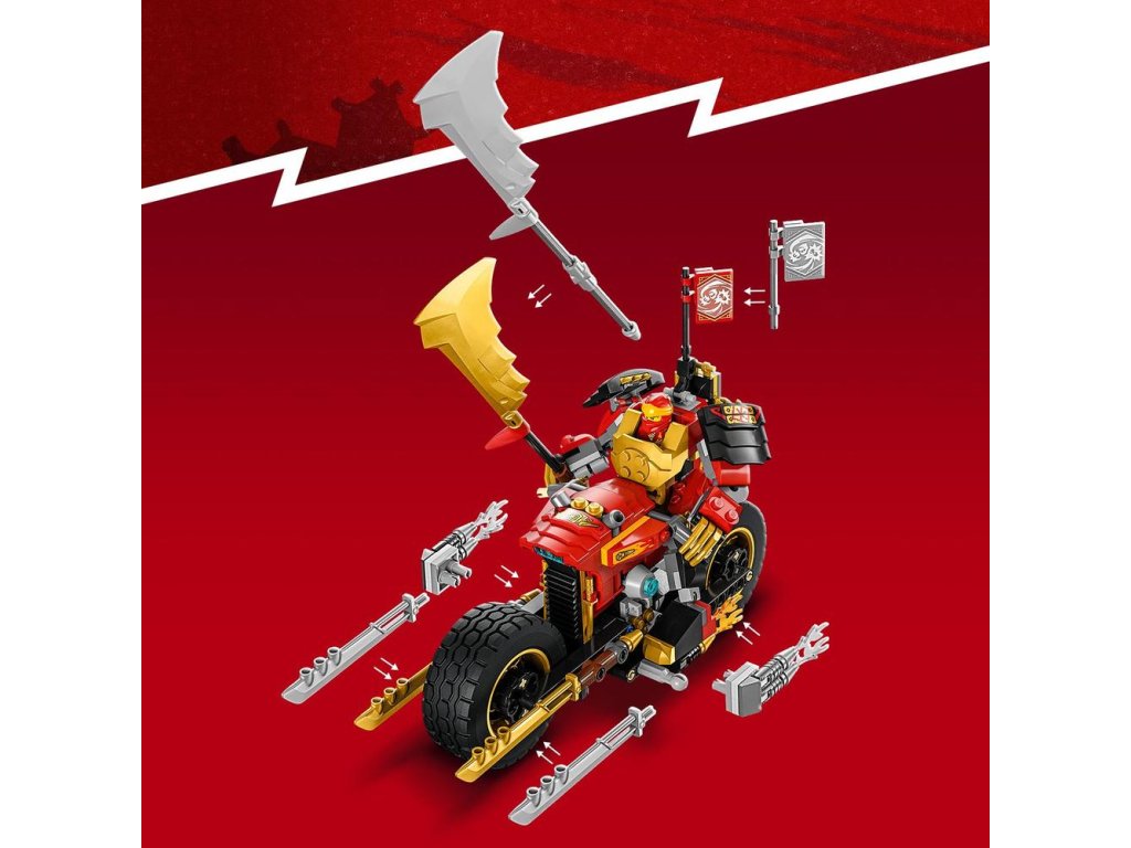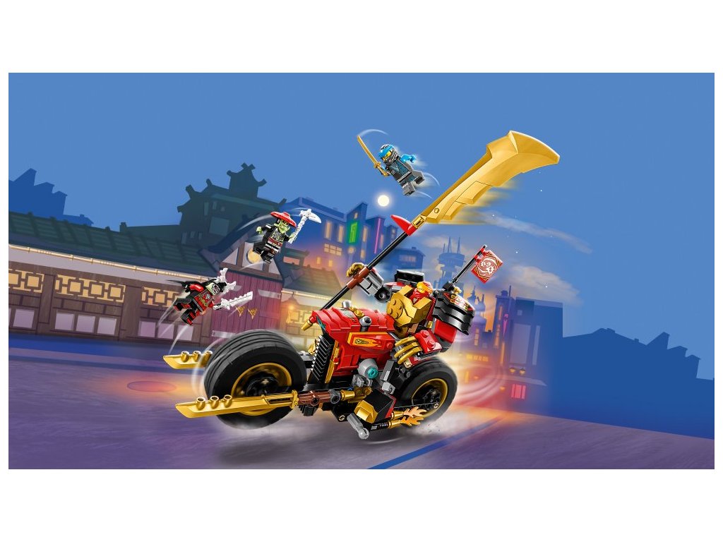 Malí stavitelé od 7 let a fanoušci parádních strojů si budou s akční stavebnicí Kaiova robomotorka EVO (71783) přehrávat své vlastní souboje dobra proti zlu. K dispozici budou mít pohyblivého robota a parádní motorku, kterou lze vylepšit na ještě výkonnější stroj s pomocí zlatých bočních panelů a obrovské zlaté čepele.