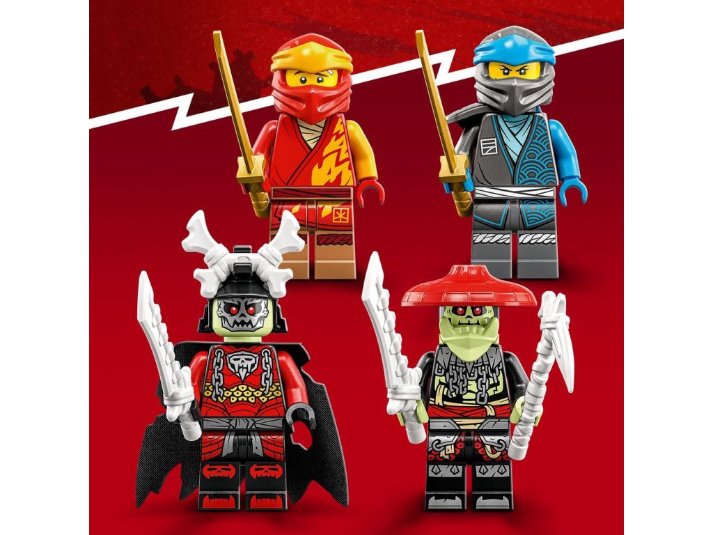 - 4 minifigurky – Stavebnice obsahuje 2 nindža bojovníky, Kaie a Nyu, s meči a 2 padouchy, Kostlivého krále a Kostlivého lovce, kteří jsou také po zuby vyzbrojení
