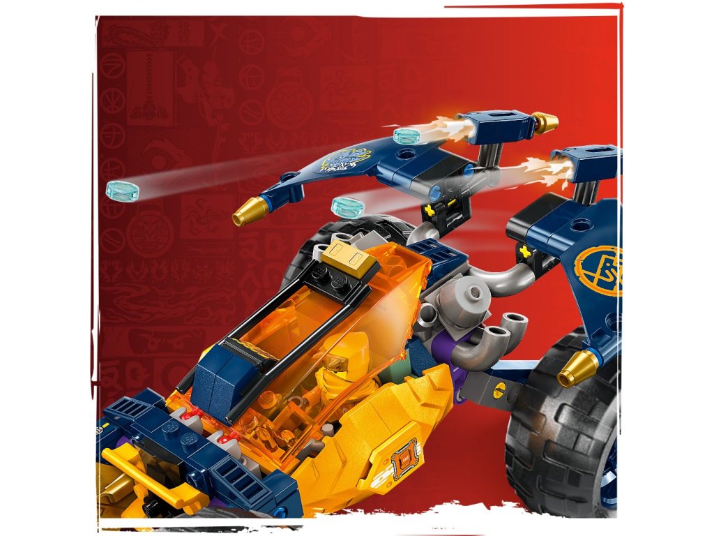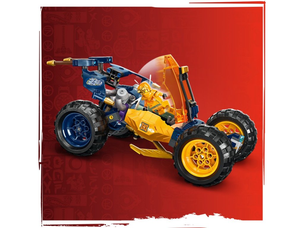 - Model nindžovské terénní buginy pro děti – Děti od 7 let si s Arinovým terénním vozidlem připomenou bitvy z 2. řady televizního seriálu NINJAGO® Dračí povstání