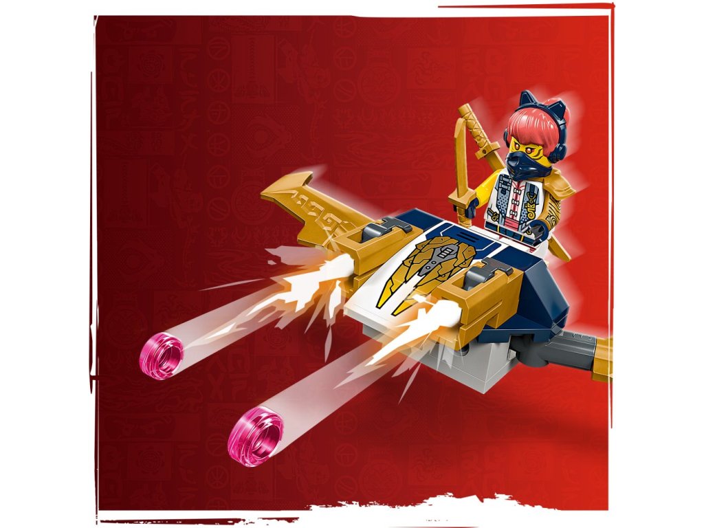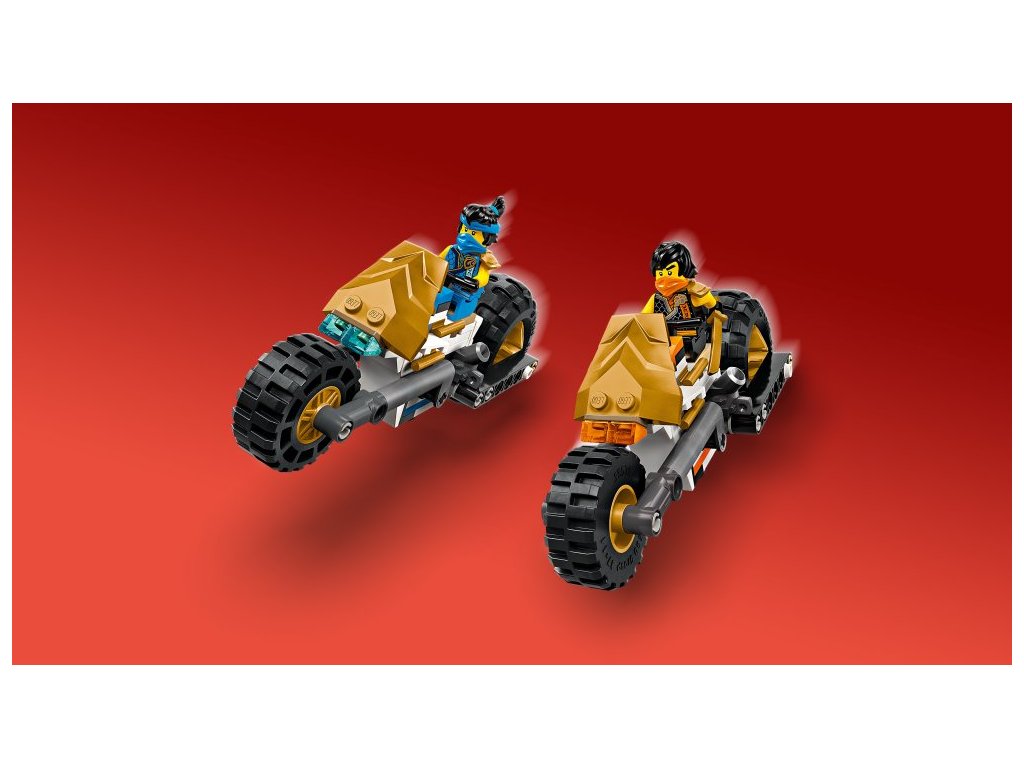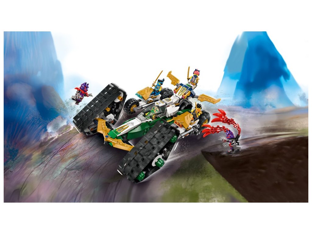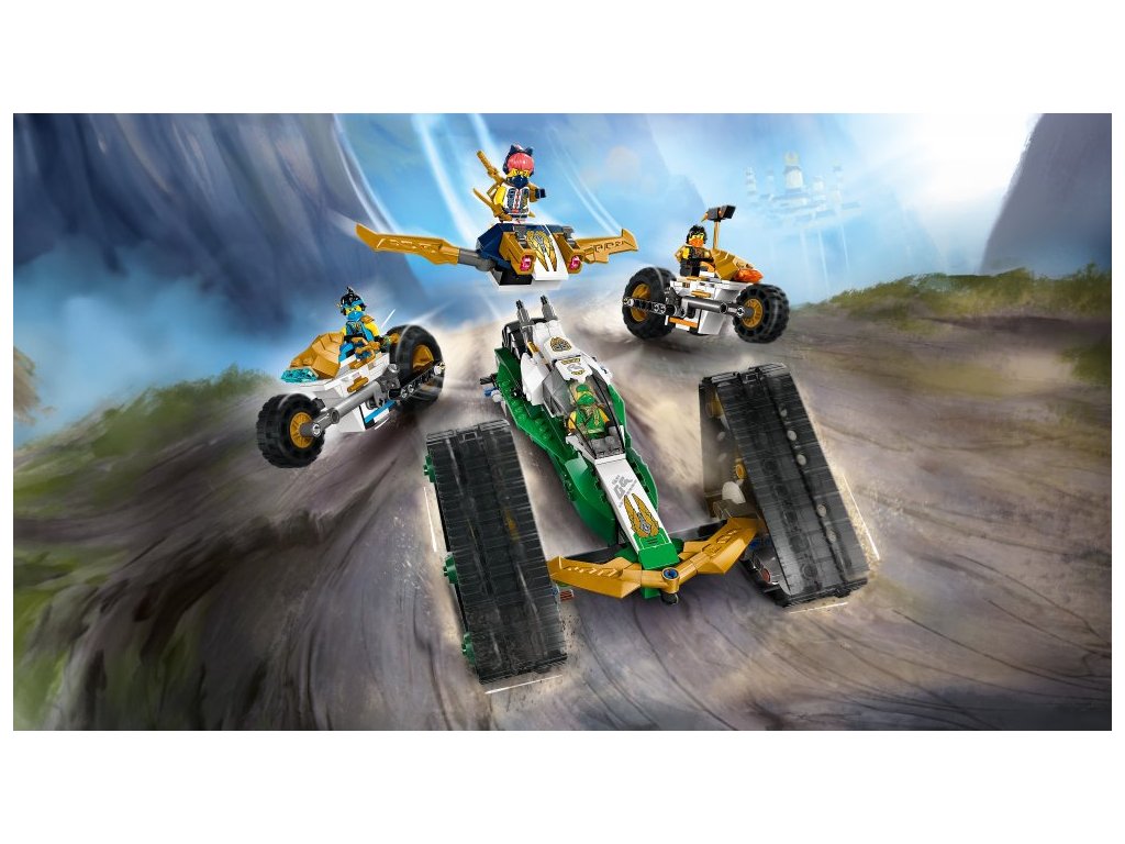 - Odnímatelná nindžovská vozidla – Velké vozidlo NINJAGO® lze rozdělit na 4 menší vozidla: Sorin kluzák se 2 vystřelovači, Lloydův terénní závoďák a motorky Colea a Nyi