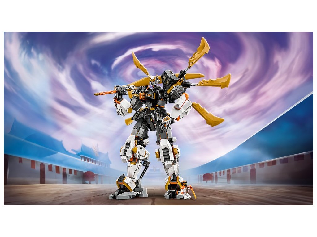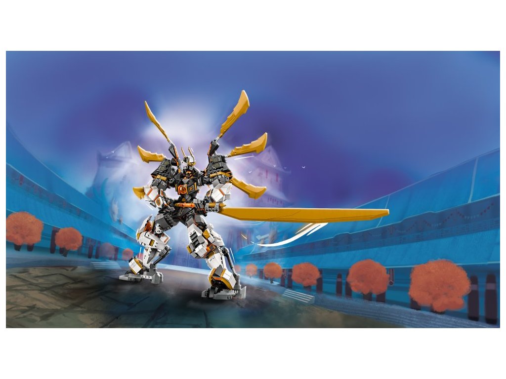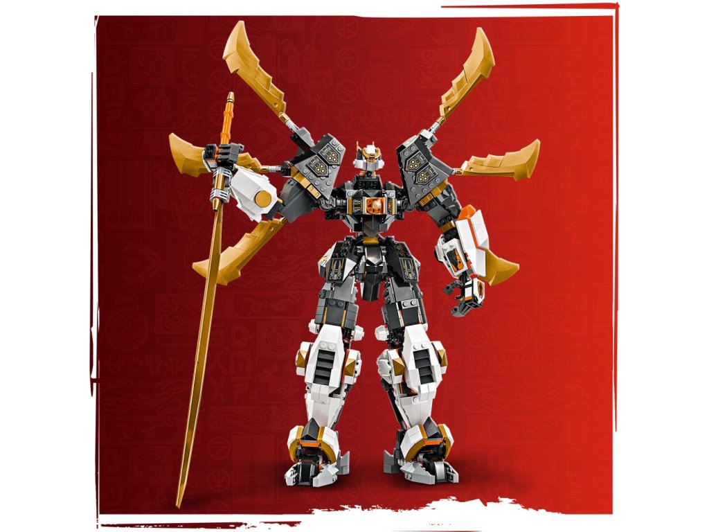 - Pohyblivý robot – Vůbec největší titanový oblek NINJAGO® s pohyblivými pažemi, nohama, hlavou, tělem, otočnými body a klouby, který děti mohou napolohovat do bojových postojů