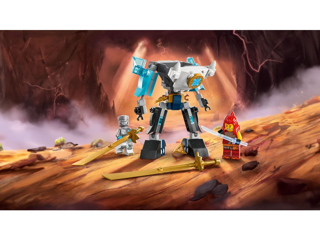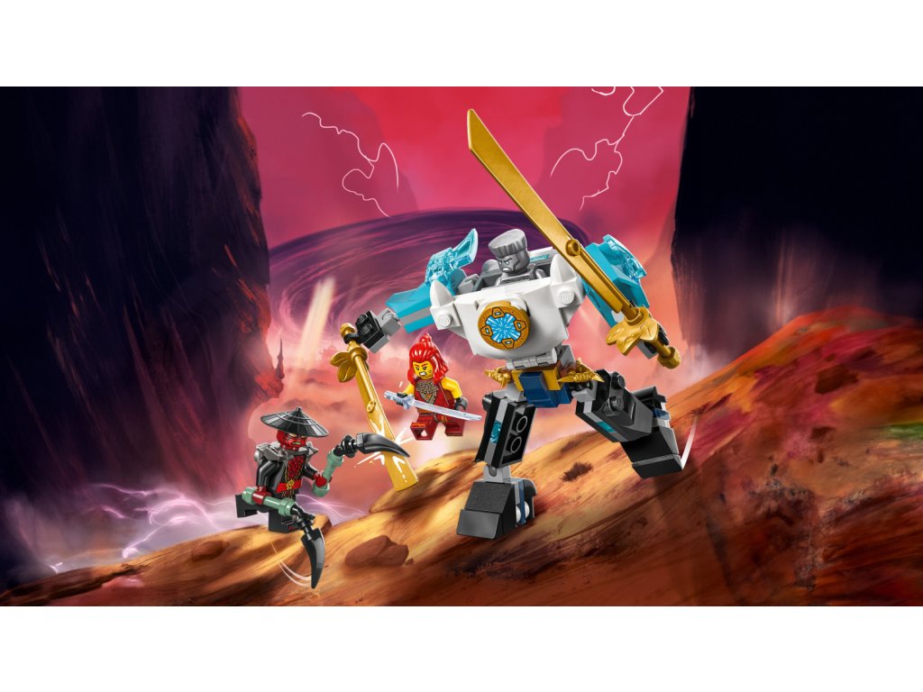 - Pohyblivý robot – Zaneův bojový robotický oblek má pohyblivé paže, nohy a ruce, horní část těla, kterou lze otáčet o 360 stupňů, otevírací trup s místem pro minifigurku a 2 velké meče