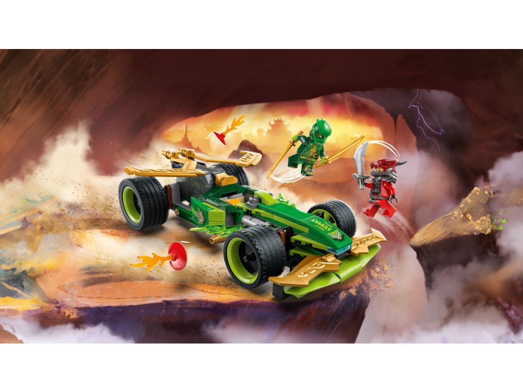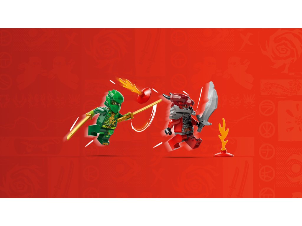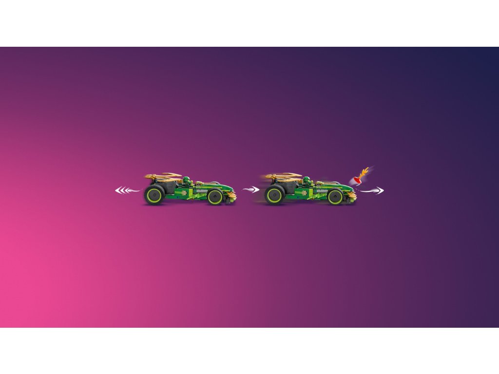 Součástí stavebnice jsou 2 minifigurky NINJAGO: Lloyd se 2 zlatými katanami a zlotřilý dračí bojovník s mečem, se kterými si děti připomenou napínavé bitvy. Součástí stavebnice jsou také 2 světelné prvky, ze kterých lze vytvořit malou překážkovou dráhu pro závodní auto.